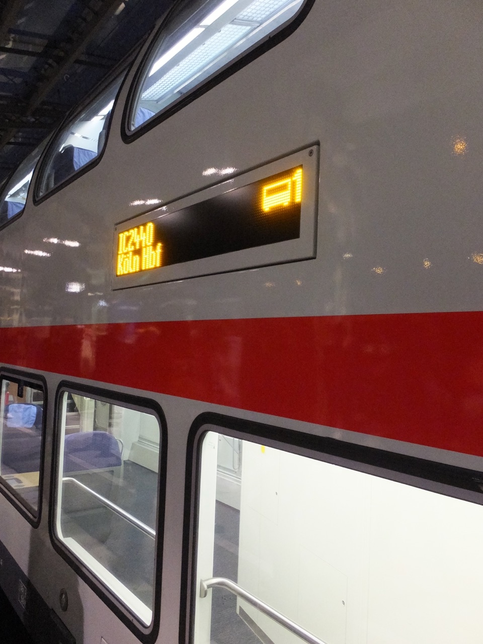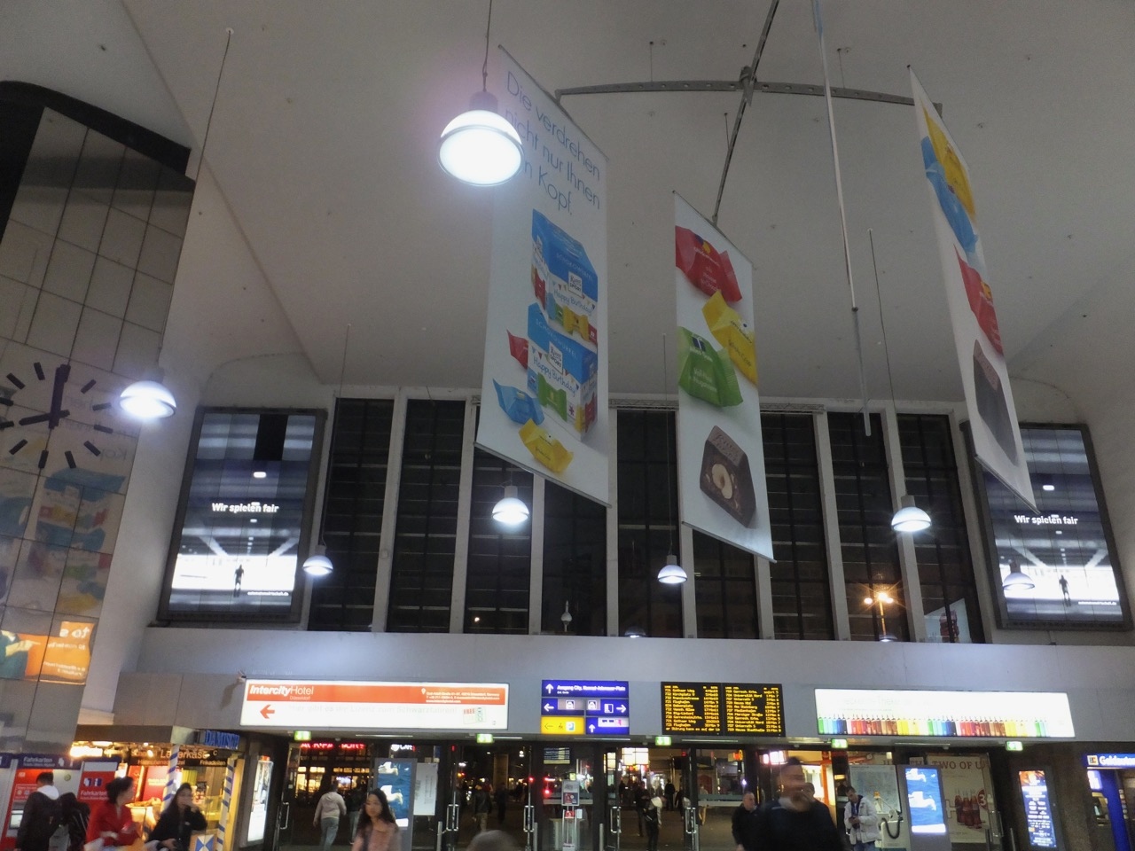 ECはICEと違ってどんな客車が来るかによって旅の気分が変わってきます。ケルンに18時くらいに着くバーゼルからハンブルク行きはスイス国鉄の車両でした。2等車は昔の日本の急行型電車のようなボックスシートで特急らしくなくがっかり。フランフルトからスイス経由ミラノ行きには振り子式のきれいな特急型とのこと。こちらに乗ればよかったです。
