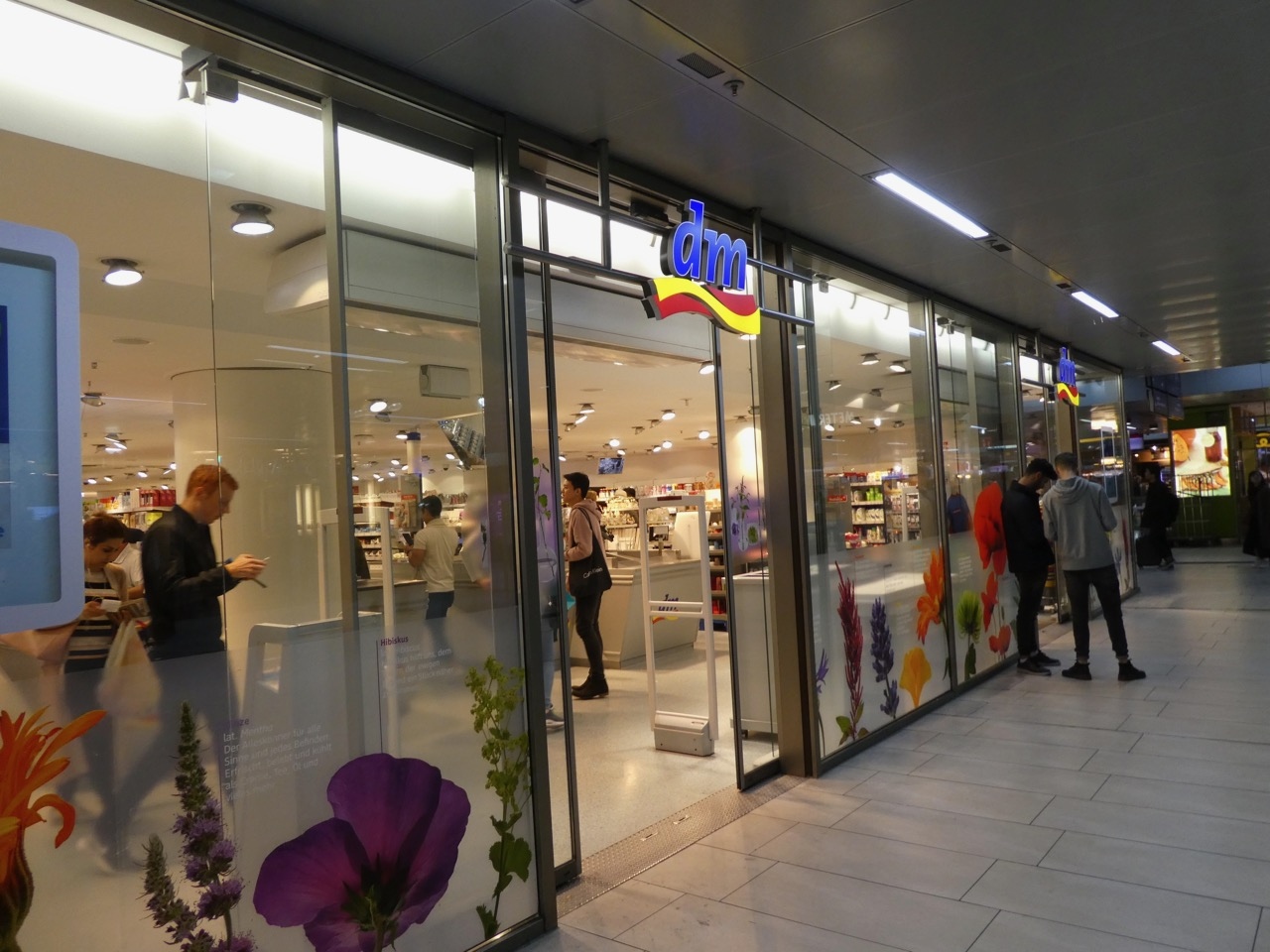 「dm」というドイツの街中でよくみかけるドラッグストア。ここデュッセルドルフではなんと駅の構内にありました。それも相当広く品揃えも豊富。なお、駅構内とはいっても日本とは違って改札口はないので自由に入れます。