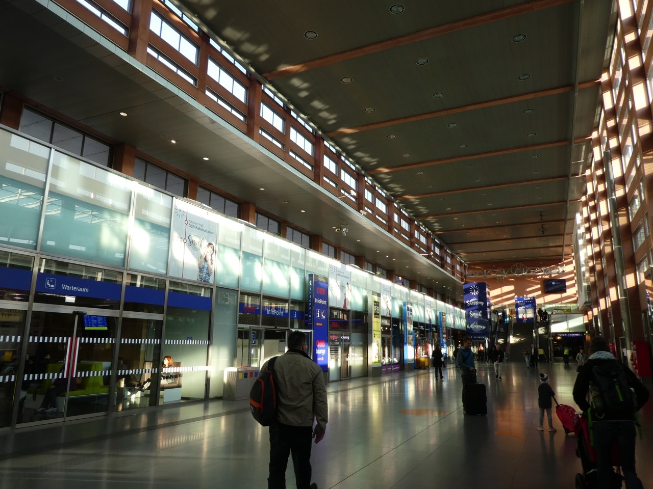 駅構内がおもしろいです。駅舎ホールから一直線に伸びる通路の両側は商店街。その中にぽつぽつとホームへの登り口があります。日本だとありえない光景です。20番線まであるのでその商店街も長いです。ドラッグストアもありますしファーストフードのお店もよりどりみどり。旅の食料調達には便利です。