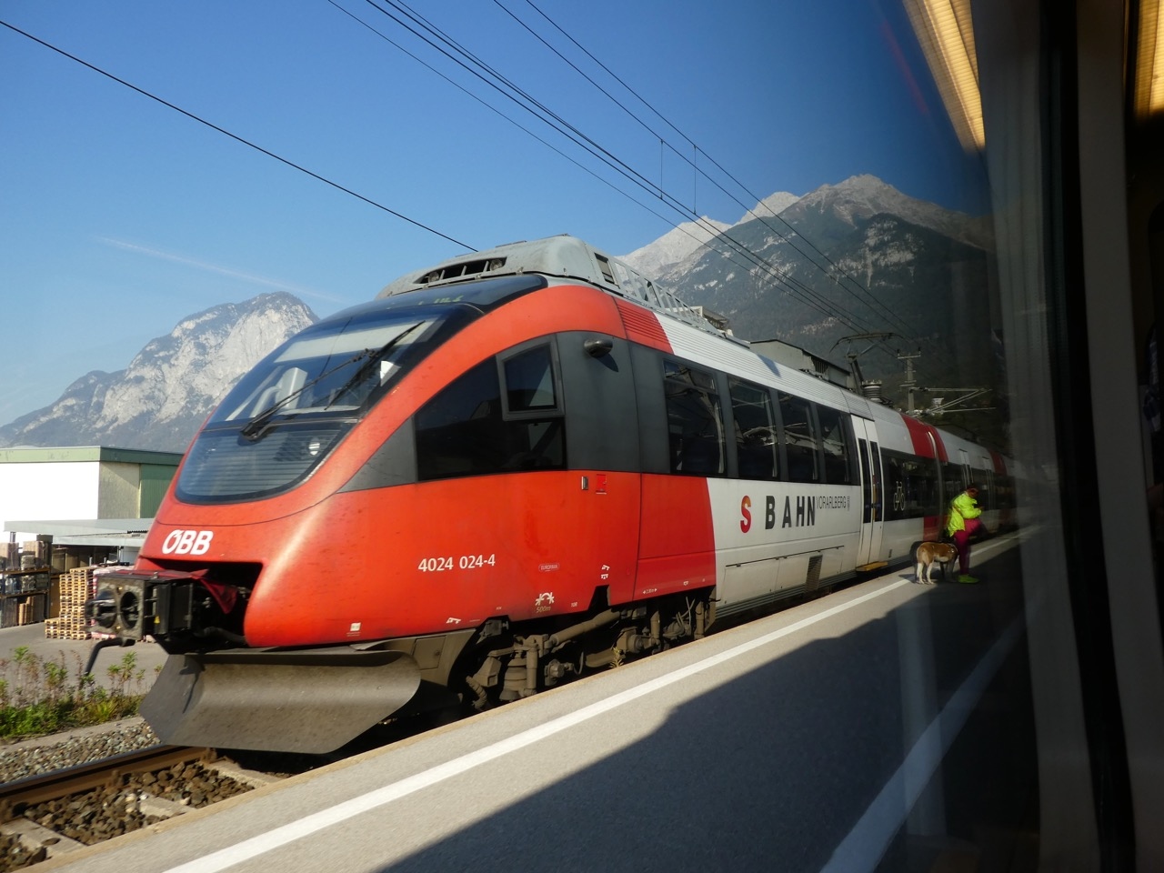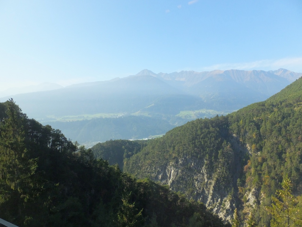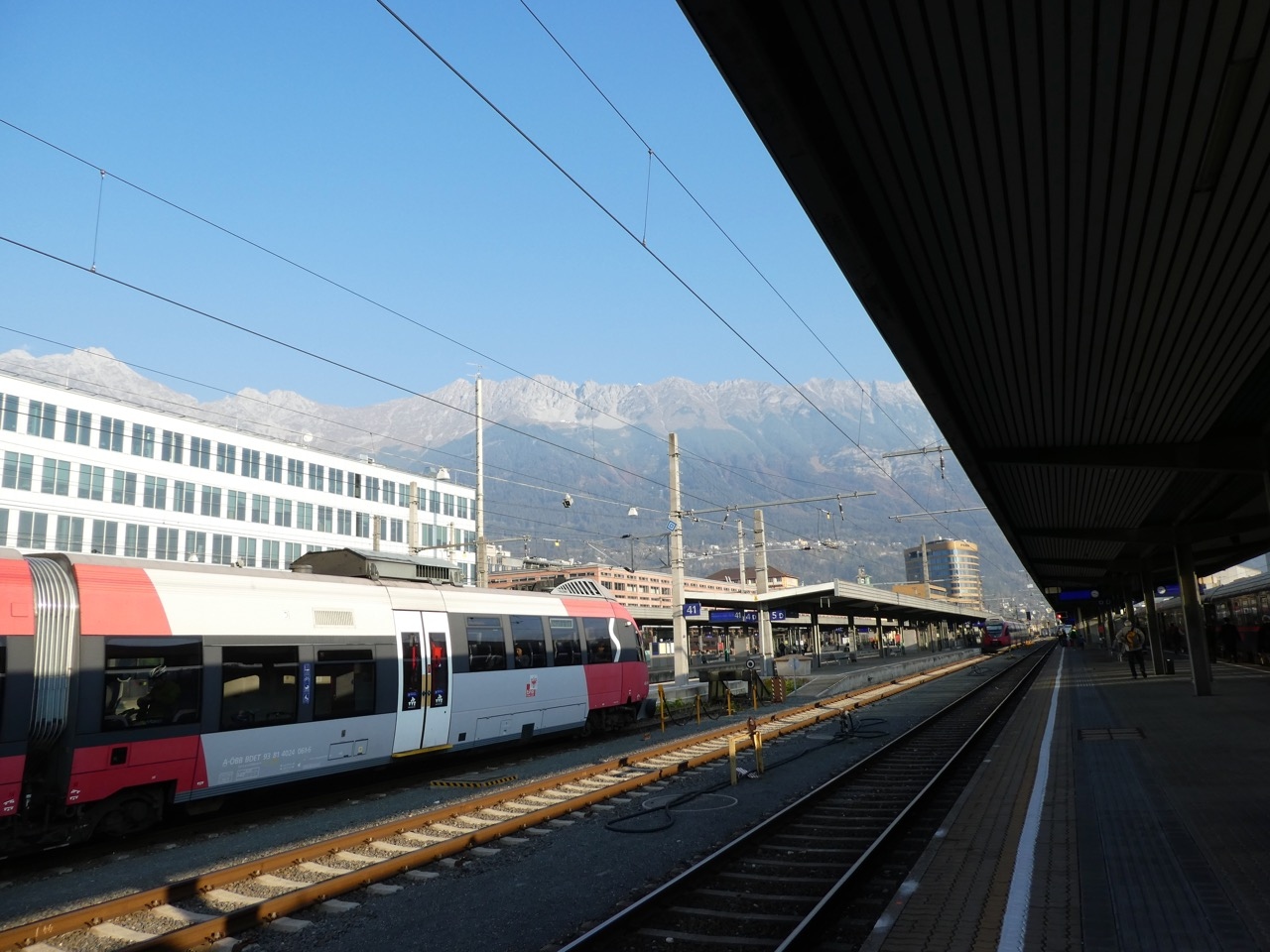 インスブルックからミュンヘンに行くには、イン川沿いに東に行ってから北上するルートを、西に向かってドイツアルプスの裾野をまわってガルミッシュ=パルテンキルヘン経由で高原を行くルートがあります。後者はヨーロッパでも絶景区間として有名。インスブルックを出るときに進行方向左側の席(インスブルック駅は南北になっているので席は東側)をとりましょう。30分にわたって山裾をくねくねと別荘地や草原や森を抜けて高度を上げていきます。最後には西方はるかまで見通せるイン川の谷とそのむこうにアルプスの山々という絶景です。