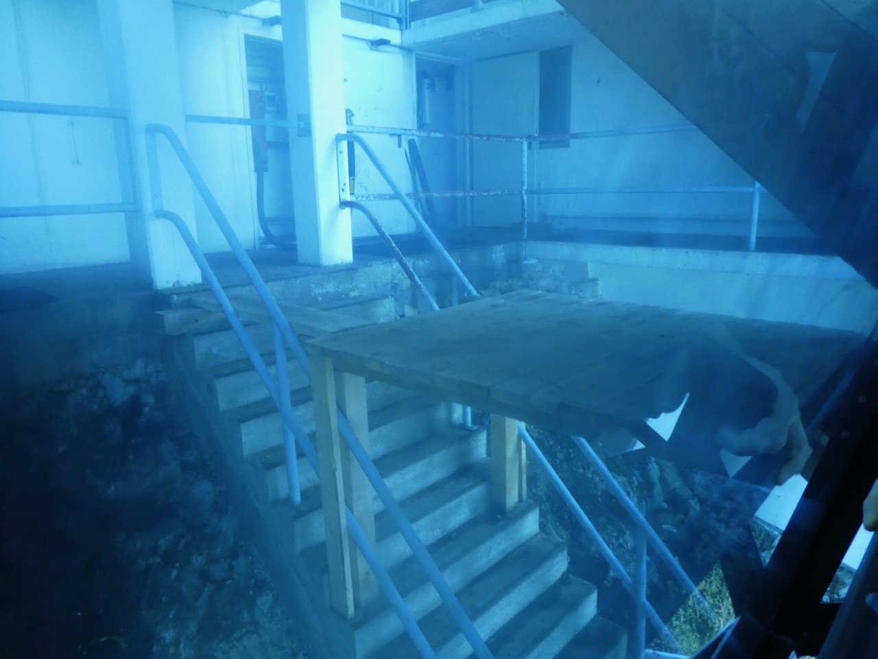 外観は茶色に塗ったのかな、というコンクリートの平凡なもの。中からみると吹き抜けなのにびっくりですが。
