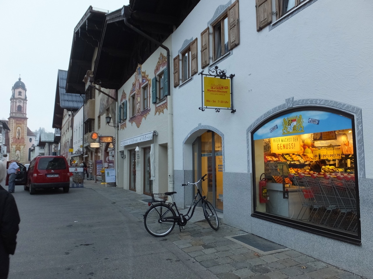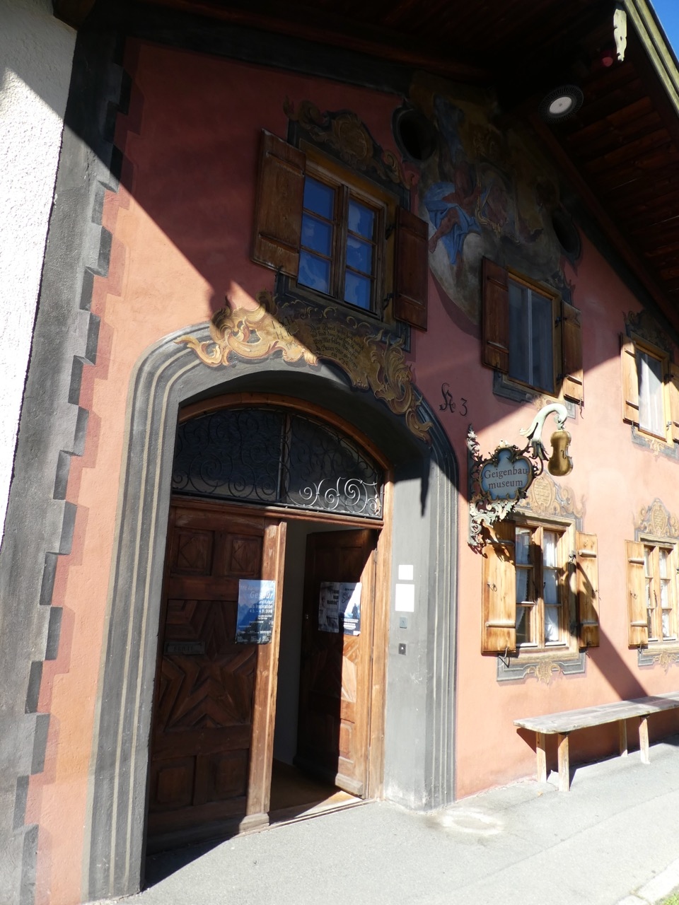 ミッテンバルトの教会から伸びる一番の中心地を通る通りです。ホテルやカフェ、いろんな店があります。壁にはほとんどの建物にこの街の特徴でもあるフレスコ画が。一軒一軒見て回るのも楽しいです。なんといっても綺麗です。常に補修してるのか、新しいのか鮮やかで立体感のある絵が多いです。