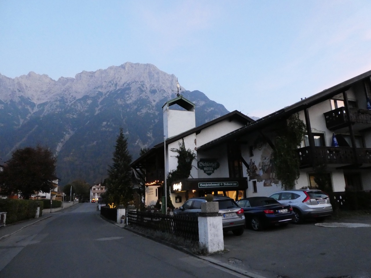 ミッテンバルトの街のすぐ裏に屏風のようにそびえるドイツアルプスの山。あまりの急角度に恐怖心すら覚えます。