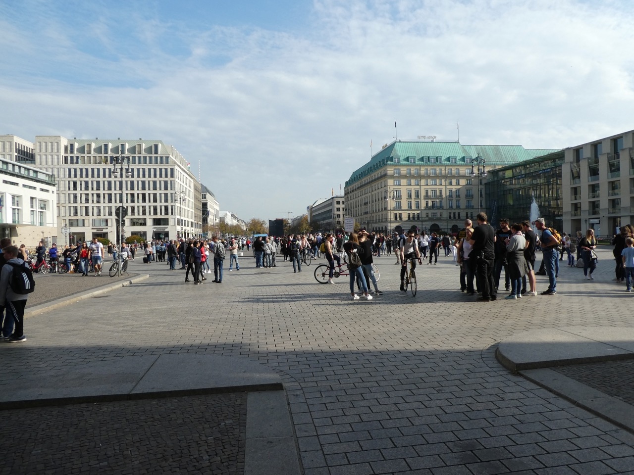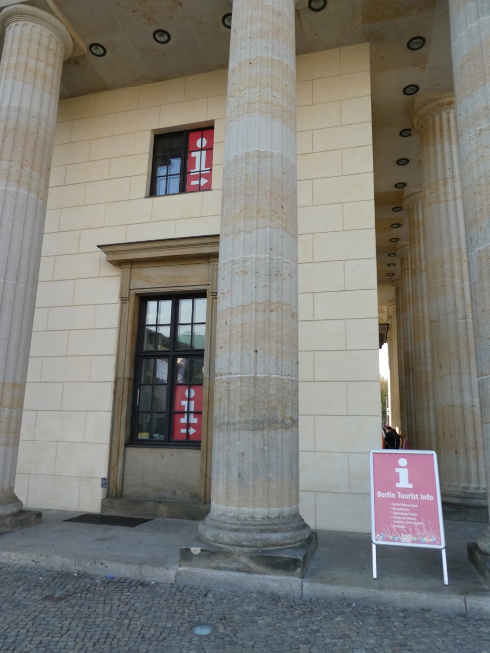 ベルリン中央駅の案内所は見つけられなかったのに、このブランデンブルグ門の案内所は簡単に見つかりました。なんと門の建物に同居です。これ以上わあkりやすい場所はないでしょう。観光客がいっぱいでした。