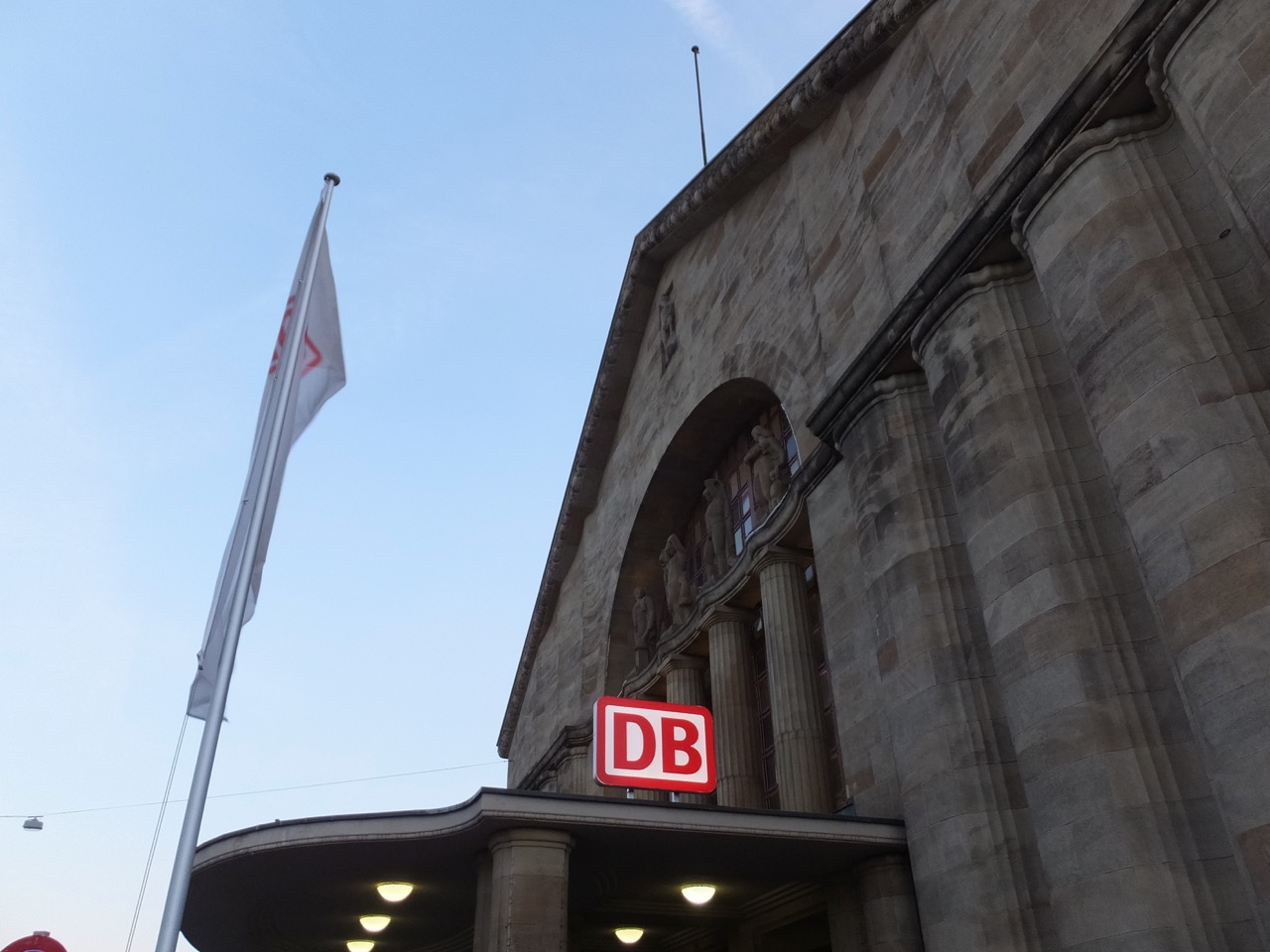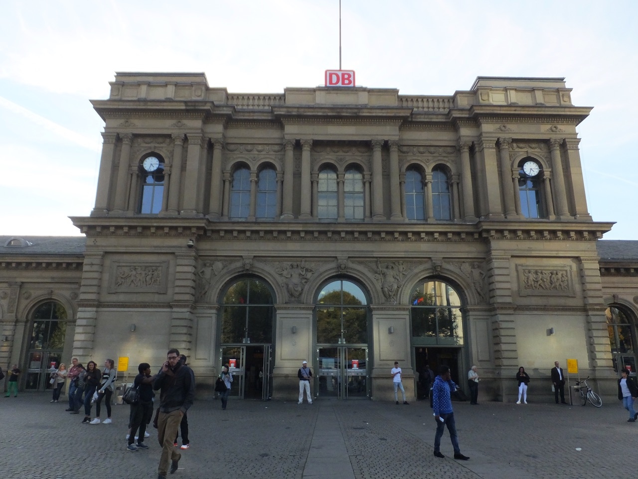 ライン川の左岸。フランクフルトからだとライン川を渡って急角度で右ターンで駅に到着というドラマチックな入線です。駅舎は石造りの重厚で荘厳。両脇に大きな縦長のアーチ窓の建物、そして小さな棟屋、という左右均等できれいな配置で宮殿のよう。ただ駅前はなぜか駅前広場がなく道路だけ。そして狭苦しいところで市電とバスが発着してます。乗り換えは便利だけど、機能的すぎ?