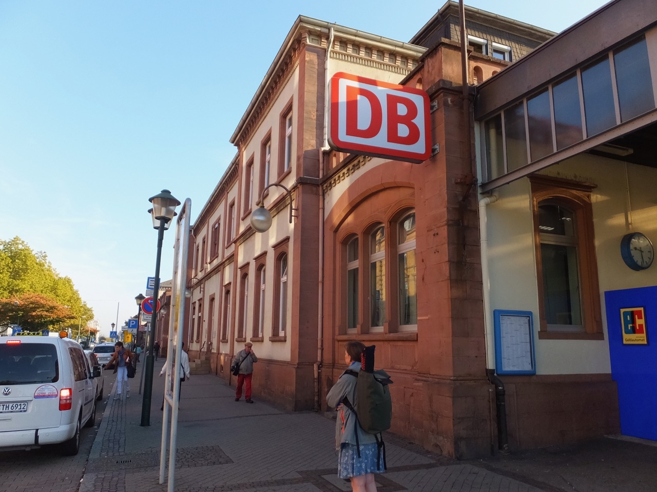 ハイデルベルクの街の玄関口の駅です。ICEもやってくる主要駅でエスカレータ完備のガラス張り通路のある跨線橋もあります。ただ、街の観光の中心は駅から東へ2kmくらい。ハイデルベルク城は3km以上。なのでとくに後者の場合はSバーンで2駅先のアルトシュタット駅の利用の方が便利です。城山の下のトンネルを抜けてすぐの駅で、500mくらいです。駅前のネッカー川には閘門もあって運がよければ船が水位上昇下降しているところも見ることができます。