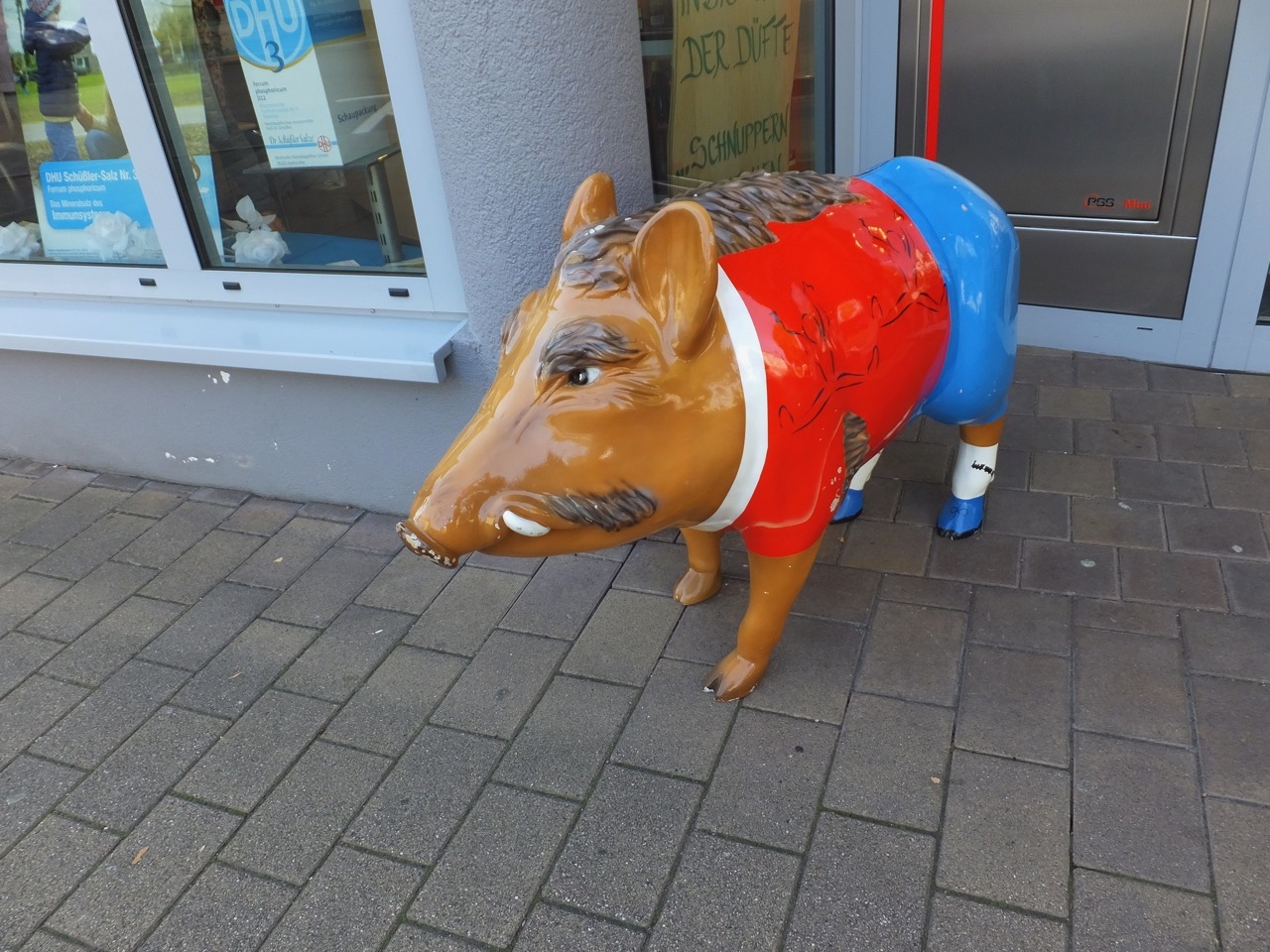 入り口に2つのイノシシの顔が柱に埋め込まれてます。たぶん、水が出るんでしょうね。リアルなイノシシの顔がちょっと怖いかも。