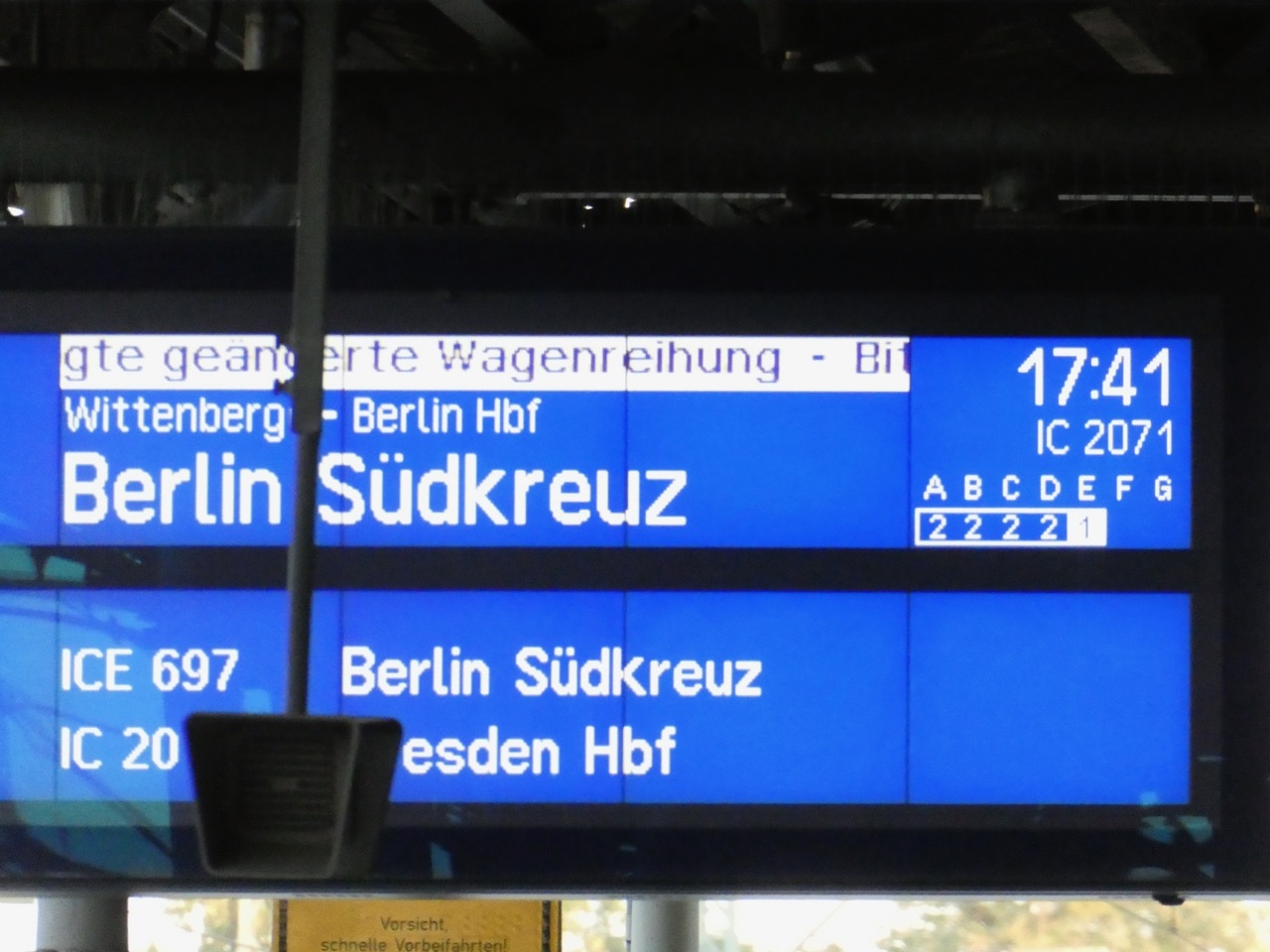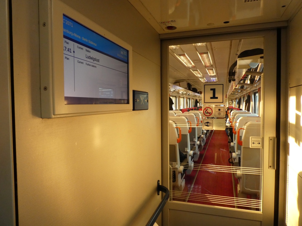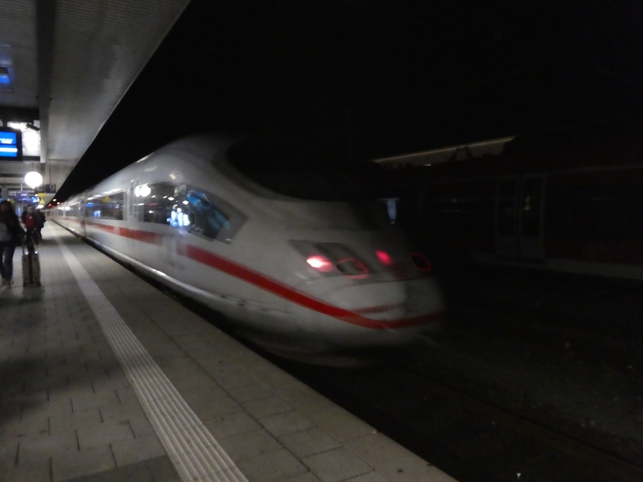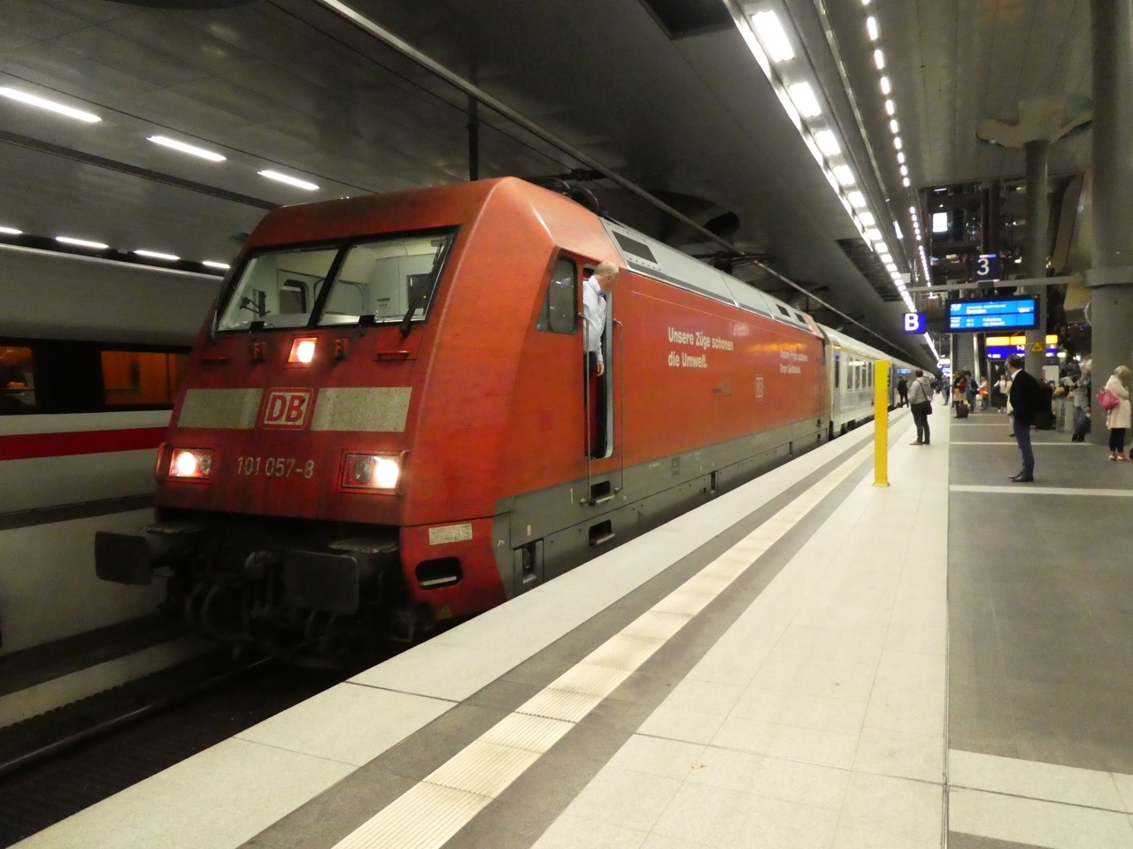 ベルリンに19時ころにつくハンブルグからのインターシティーに乗車。なんと途中で故障。後続のICEを臨時停車させて振替輸送になりました。国内特急なのにチェコの客車で新鮮。食堂車も営業してました。1等車はゆったり。でも最近の更新車なのか背面テーブルがあったりして現代的。滑るような走りは気持ちがよかったです。