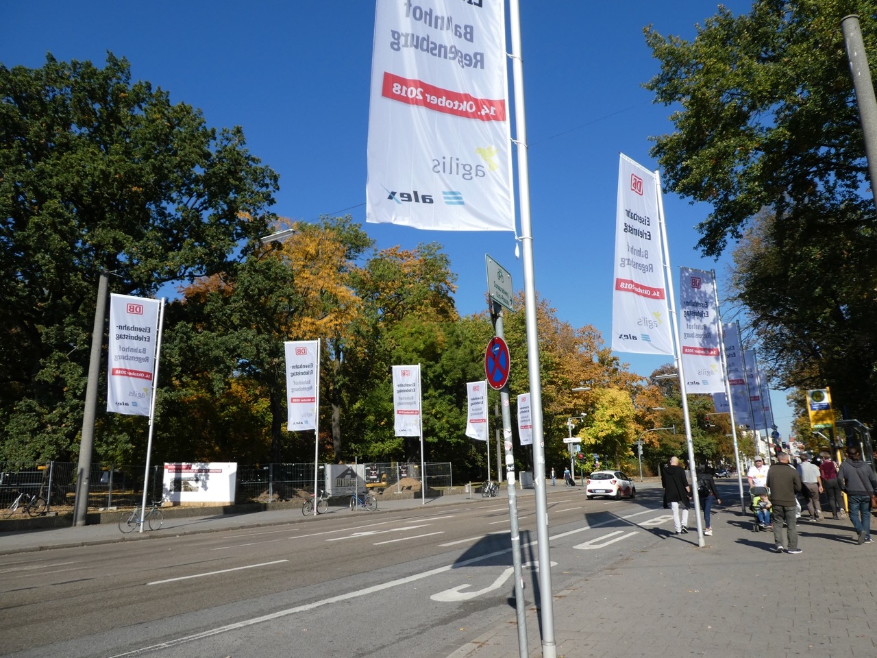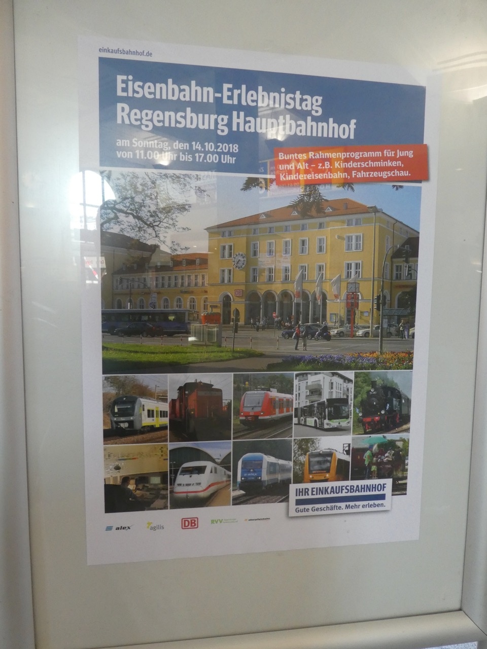 訪問時は「鉄道祭り」を開催中。いろんな電車や機関車に自由に乗ることができ、ドイツ南東部のいろんな鉄道の宣伝もされていました。模型の運転や駅前では屋台も出て賑わっていました。のんびりした感じで楽しめました。駅が街の拠点として親しまれてるんだなあ、と感心しました。- 旅行時期