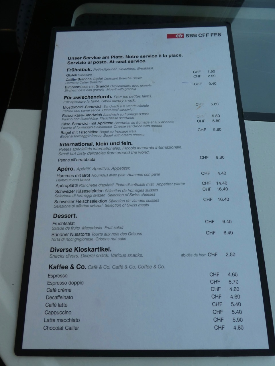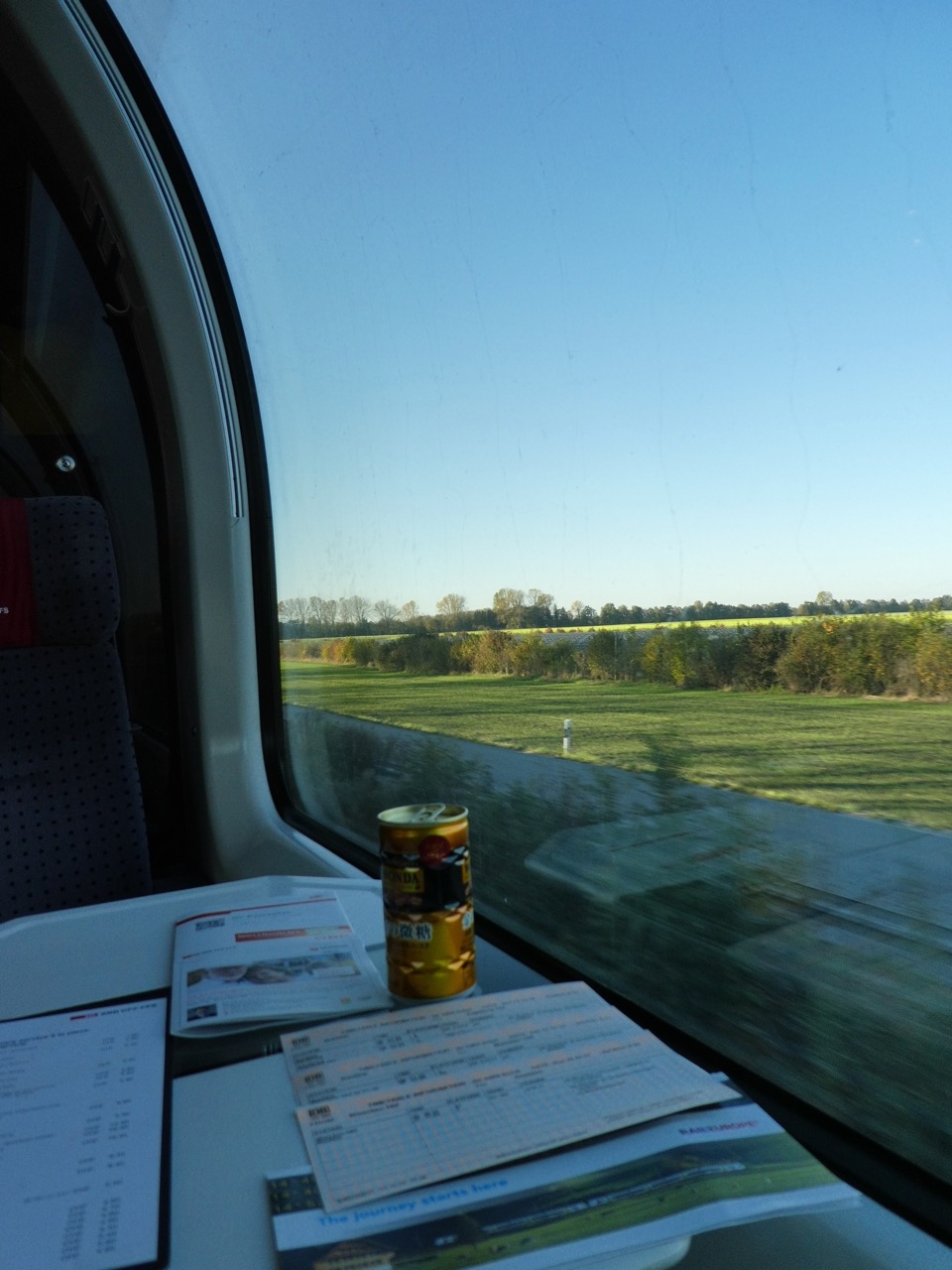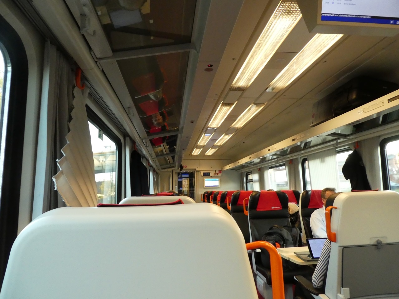 狭い空間をどうやって豪華に広く見せるか、感じてもらえるか、の拝領がいたるところに。ICEより豪華な座席、照明、電動リクライニング。何をとっても「1等に乗った感」は優れていました。- 旅行時期