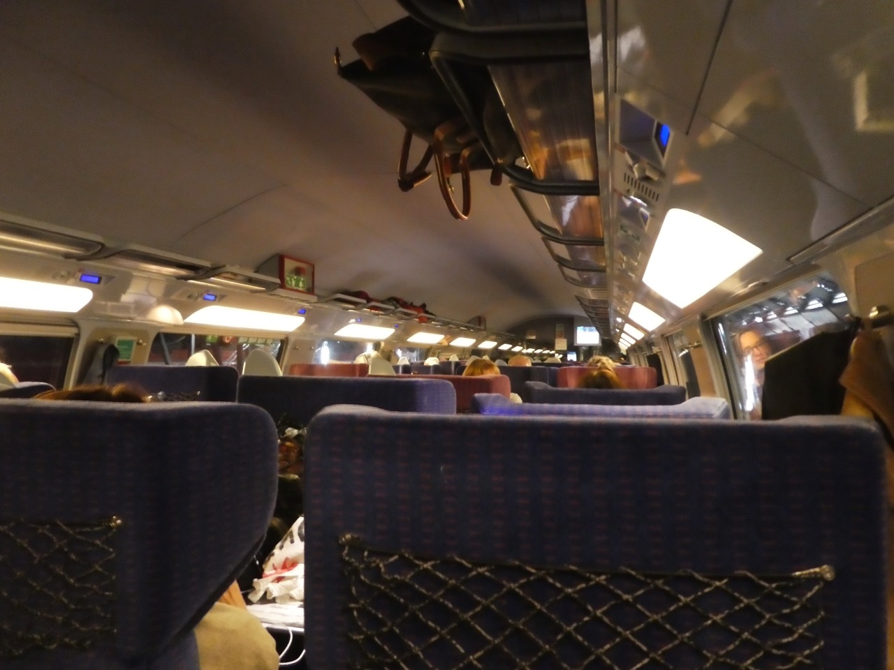 ウルム中央駅からミュンヘン中央駅の間、約2時間です。夜20:20発なので1等車は70%くらいの乗車率。楽々座れました。フランスでは全席指定なので外国なら自由席あり、というのも面白いです。