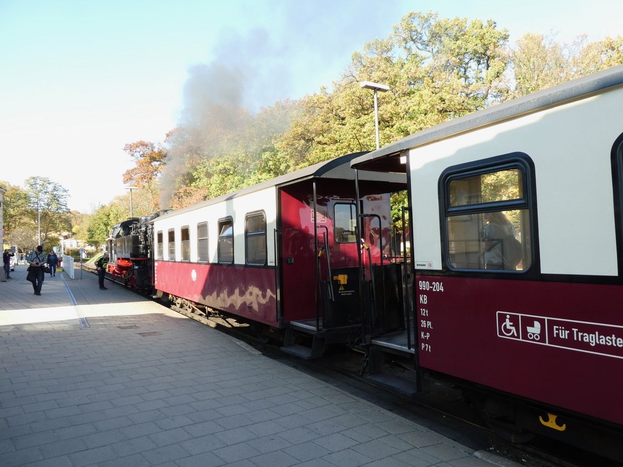 ベルリンからもハンブルグからも3時間くらいかかるバード・ドベラーンという小駅から街中を路面走行ののち、草原と林の中を快走してキュールングスボルン西まで走る蒸気列車。見て楽しく乗って楽しい列車ですが観光専用列車ではなく公共輸送機関でもあります。