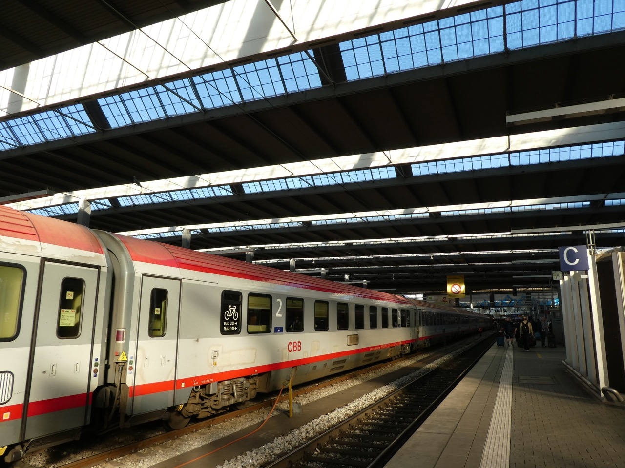 なお、深夜にナイトジェット という夜行特急寝台列車の分割と併合が行われ、最大で1時間20分停車します。2本の列車がクロスするこのニュルンベルグで編成の半分づつを入れ替えるのですが、その間休憩と体のストレッチにホームに降りる人が多かったのが印象的でした。- 旅行時期