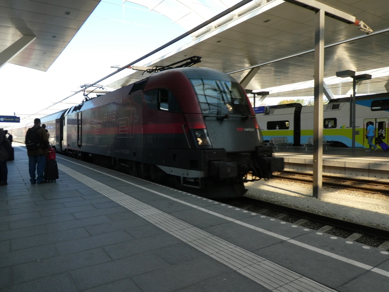 ミュンヘンからの往復、国際列車は行きが普通の客車特急、帰路はレイルジェットという高速列車でした。ただ高速線区間ではないので、主要駅停車とノンストップの違いだけで所要時間は15分ほどしかかわりません。