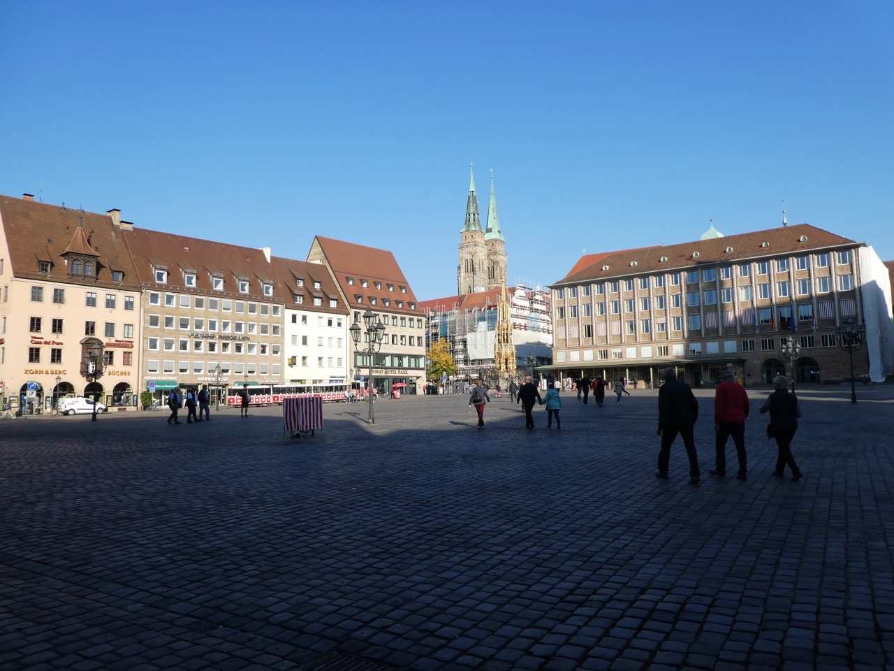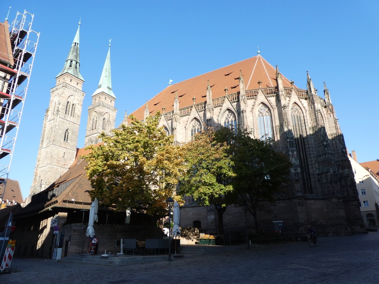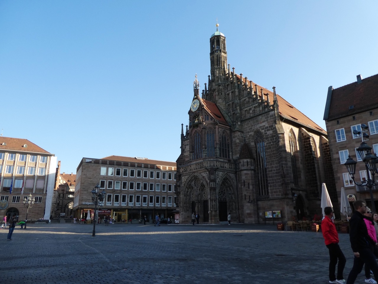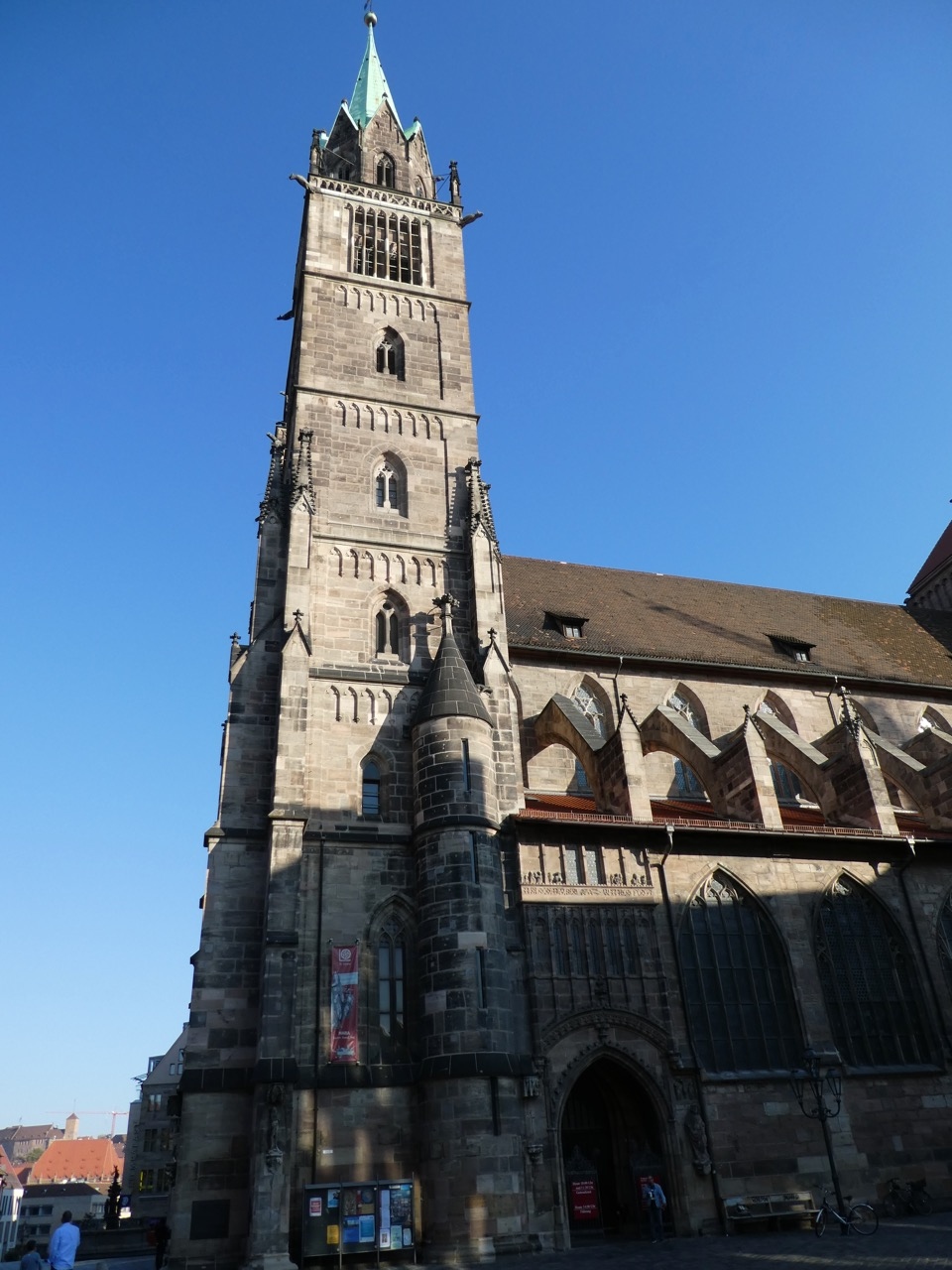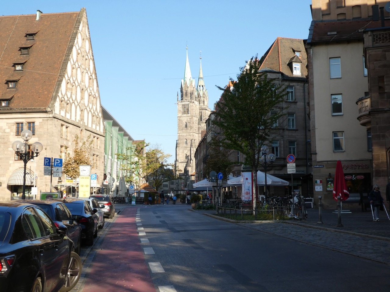 ニュルンベルグには大きな教会が3つ。駅から向かうと2つ目です。マルクト広場に面してあるのでやや小さく見えてしまうのが残念。日曜の午前中でミサの始まる直前だったのか、ちょっとだけ中を見ることができました。正面に太陽の陽が差し込むステンドグラスのある高い窓があり、神々しいふんいき。素晴らしいです。