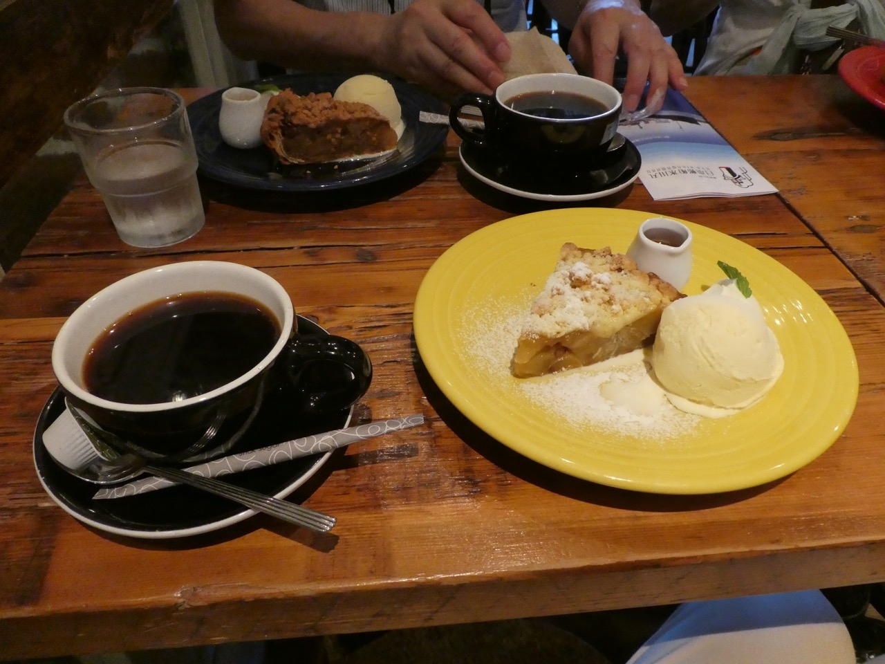 赤れんが倉庫は若者向けのお店が多く、しかも混雑。さいしょに行ったお店は空いてましたが一人1品の注文が必須で食事は大きなピザしかなく年配客には無理(現在そのお店なくなってます)ということで、やや混雑していたけど食事時にデザート系のお店でやや空いていたのでこの店に入店。当たりでした。パイ1個でもどっしりで十分。飲み物とセットで軽昼食になりました。お店の方も、一日乗車券の赤れんがの割引になるお店の一覧を調べて教えてくれたり、優しかったです。季節のパイもおいしそうで、来るたびに新鮮なメニューがありそうです。