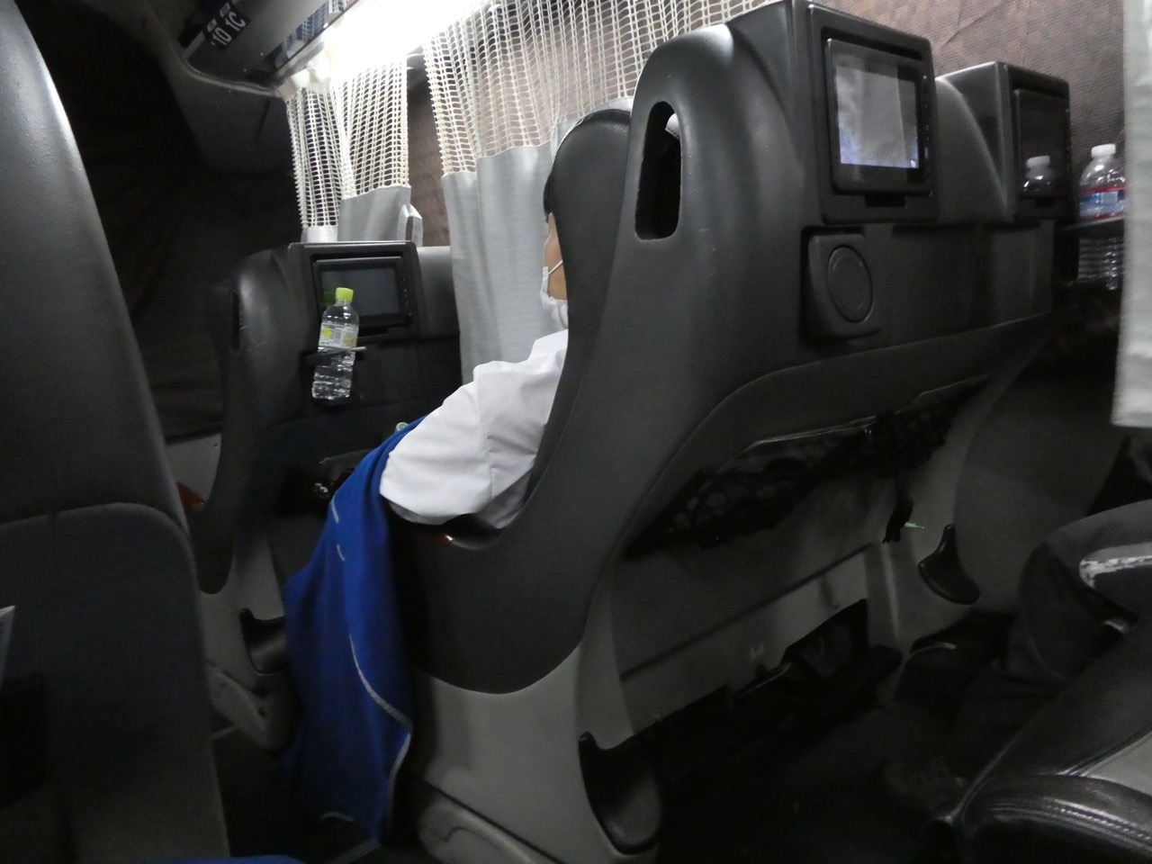 リクライニング、みなさん一斉に倒しましょう、の案内ビデオは流れますが、これはご愛嬌。なにせ、前述のとおり関係なし。