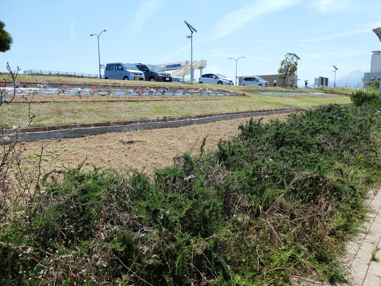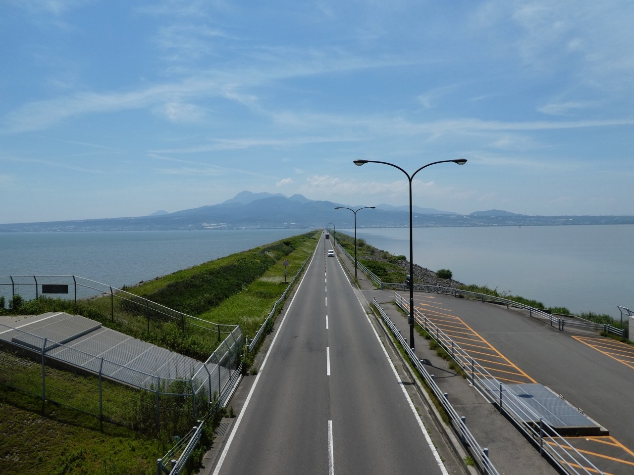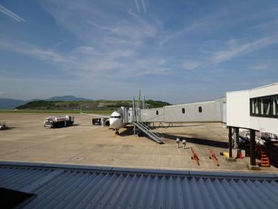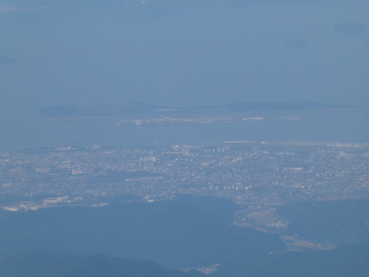 島を切り崩し、海を埋め立ててできた日本初の海上空港。できた当時はその発想にびっくりしたものですが、今では関空や中部国際空港、北九州空港、さらには羽田の沖合展開などで珍しさはまったくなくなってしまいましたが、そのパイオニアとしての地位は輝いています。空港は滑走路1本でそう広くもないですが、ターミナルビルは国内有数の大きさに感じました。実際、バスは4方向に続々と発車していくのは壮観でした。なお、ターミナルビルから見ると滑走路の向こう側に島の丘が残っていて、大きなNAGASAKIの文字が見えてアクセントになってます。