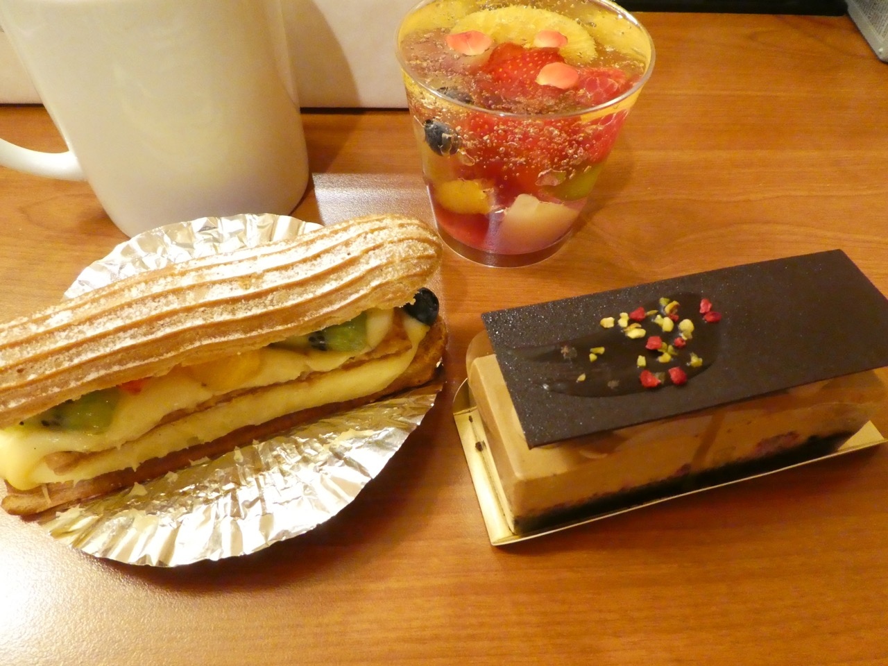 ホテルで食べる夜のケーキを購入。横浜は高価なお店が多かったのですが、こちらはやや安価なのに美味しそう。とくにエクレアのその硬そうな焼き上げ感が気に入って購入。あとはカップデザートとケーキを1個づつ。