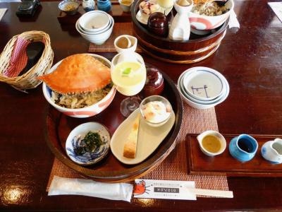 かにまぶし、は、カニがあらかじめむいてあってごはんにまぶしてあるので、無言でカニと格闘する必要がありません。なので「会話がはずむ」という宣伝になるんですね。そしてかにみそ、ぽん酢、甘ダレ、お茶漬け、と4種の味で味わえます。それに茶碗蒸しやデザートもコーヒーもついて2700円。すばらしいです。