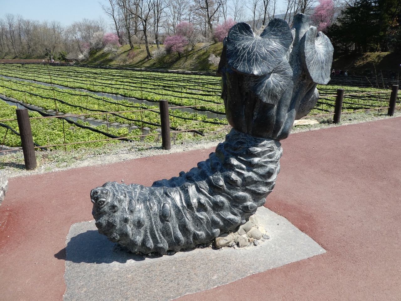 巨大なわさびのモニュメントと神社にある巨大なわらじが気に入りました。前者は無彩色なので芋虫にもみえますが・・・。冬でも緑色なので斜面の梅とのコントラストが眩しくてきれい。夏の涼しげな風景もいいですが、春もまたいいものですね。- 旅行時期