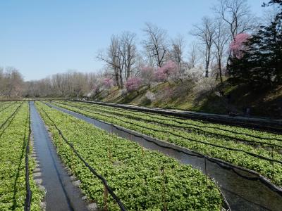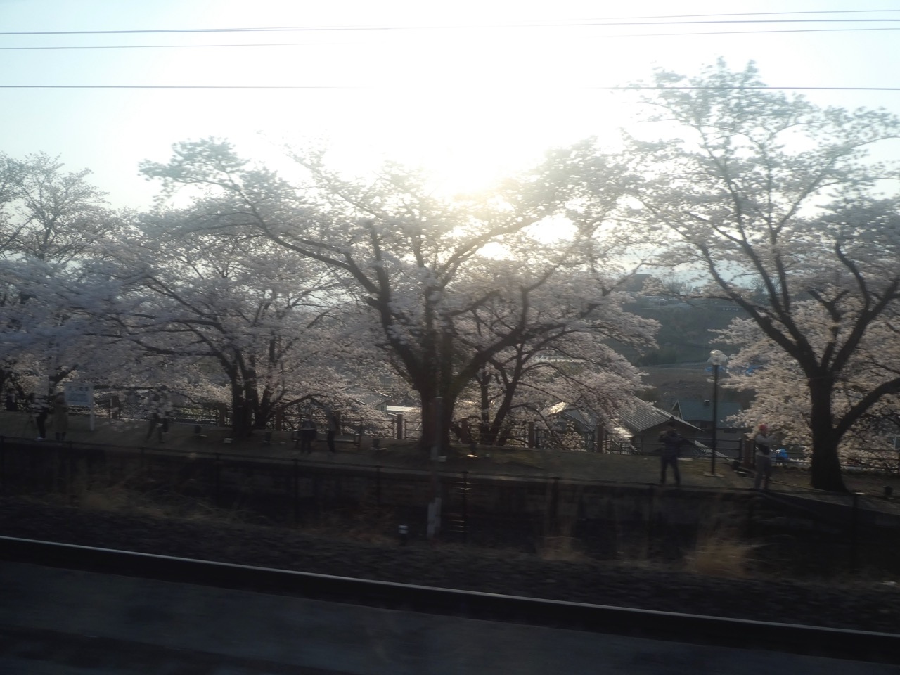 昔のホームの周囲に桜がいっぱい。列車からもきれい。とくに夕方は。