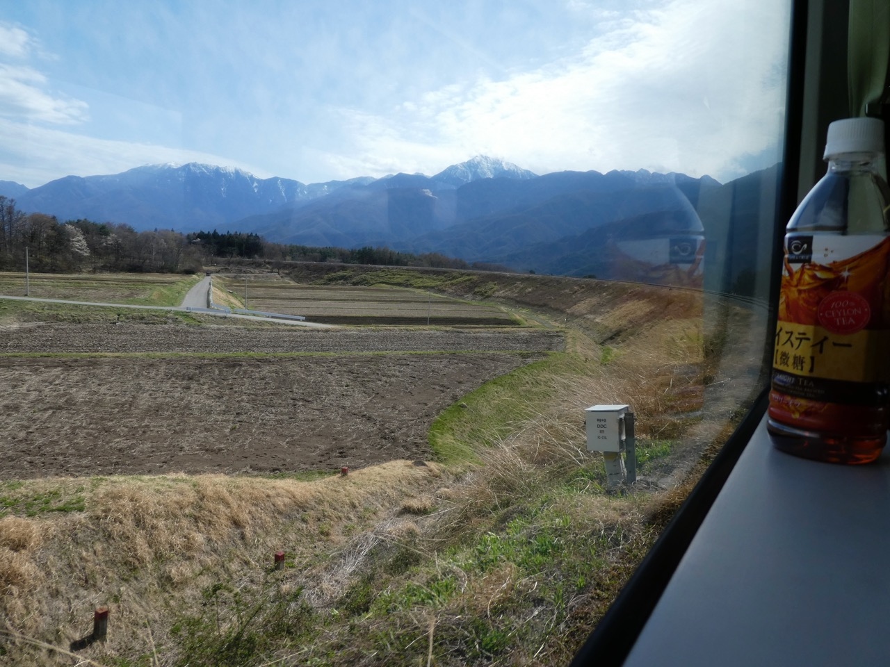 小淵沢を出て野辺山までは高原列車という感じが強いです。八ヶ岳の山裾を登っていき、野辺山の高原ではまさに八ヶ岳の中腹を走っているかのような景色が楽しめます。が、ここから千曲川の谷に降り、佐久の盆地まで川沿いの谷間をいく感じ。最後は小諸の都市圏の郊外をいく感じになります。このへんで浅間山と背後に今通ってきた八ヶ岳が見えます。