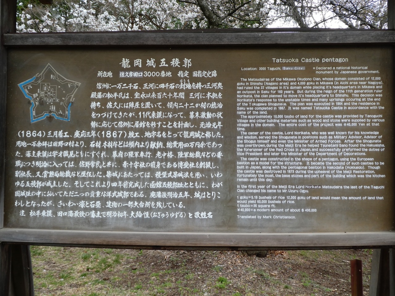 五稜郭といえば函館ですが、当時の幕府のお偉いさんが自分の領土の城(というか屋敷)も同じような五稜郭にして作ったというもの。なので完全に戦争のための城ではなく単なる居城です。しかも(一応、完成したとはいうものの)途中までしか作れなかったという。時代が時代だけにしかたないとは思います。そして明治からずっと壊されることもなくその星型の城が残されているのです。