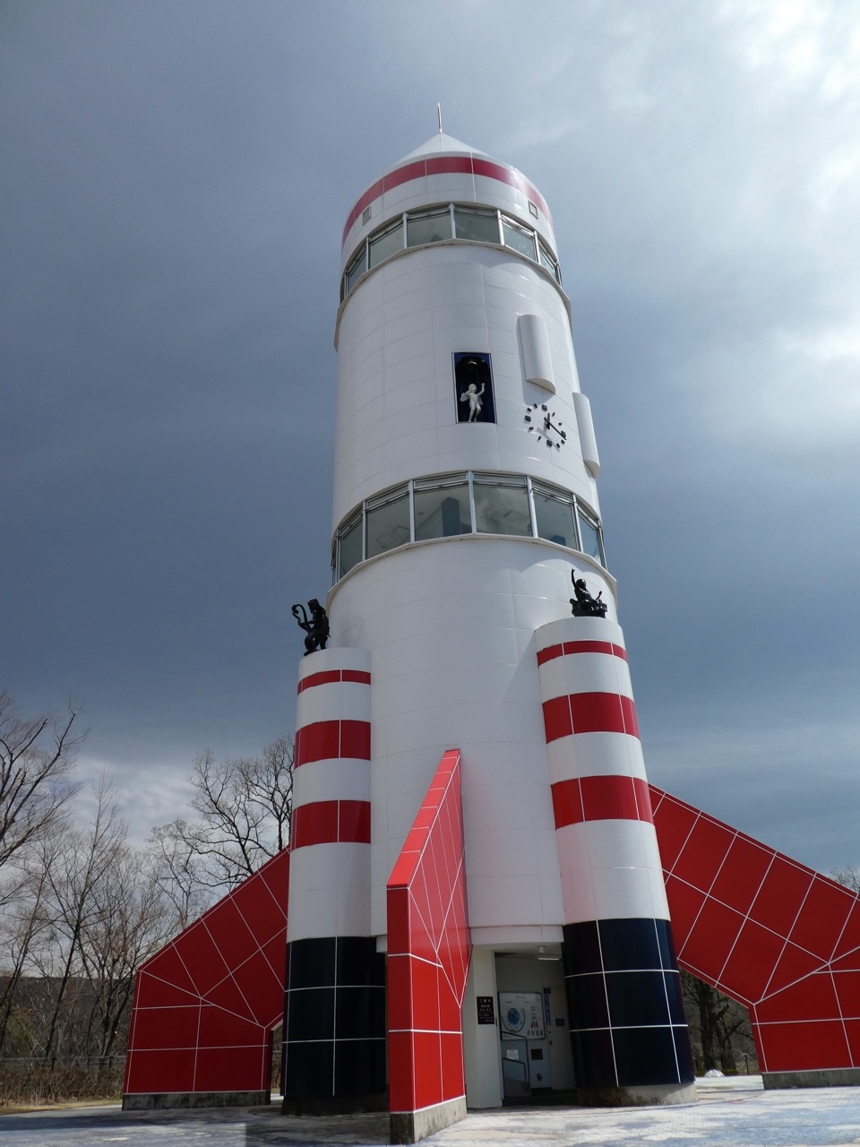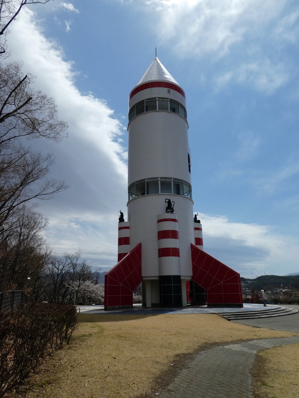 小海線の列車からでもよくわかる丘の上のロケット型の展望台。遠く離れても、ああ、あそこが臼田だ、とすぐにわかります。のちに八ヶ岳に登ったときも山頂からすぐにわかりました。目立つのもまた良し、です。