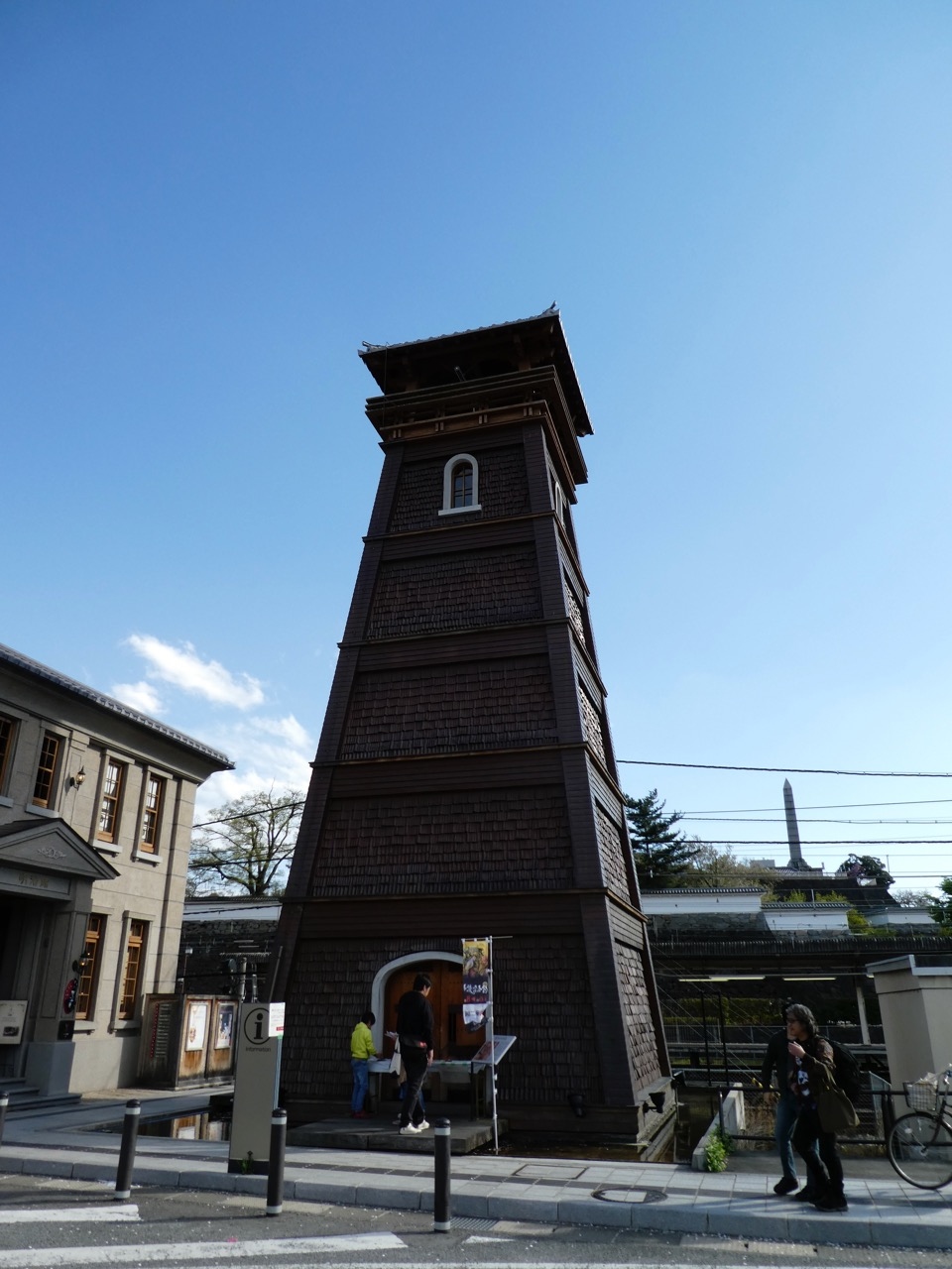 塔の断面積は小さいのに小さなお堀?で囲まれていて風格は十分。高くて鐘は下からは見えません。ちょっと離れ振り返ってみてみましょう。- 旅行時期