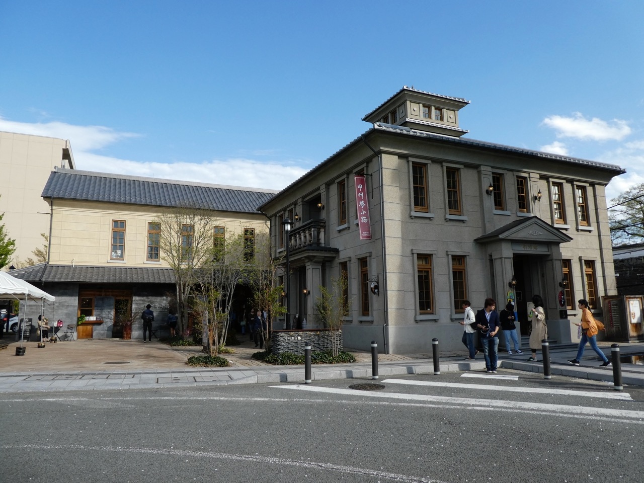 甲府駅の北口の線路際に新しく作られたレトロモダンなおしゃれな街並み。観光向けですが、そのぶん、魅力を発信せねばの思いがあふれてます。いろんなスタイルの外観・造りの建物が並んでいるあたり、下手に統一感のないところがいいですね。そして、石造りのビルのような建物があったり、平家の木造があったりバラエティがあっていいです。シンボルのように「時の鐘」の塔がそびえてます。