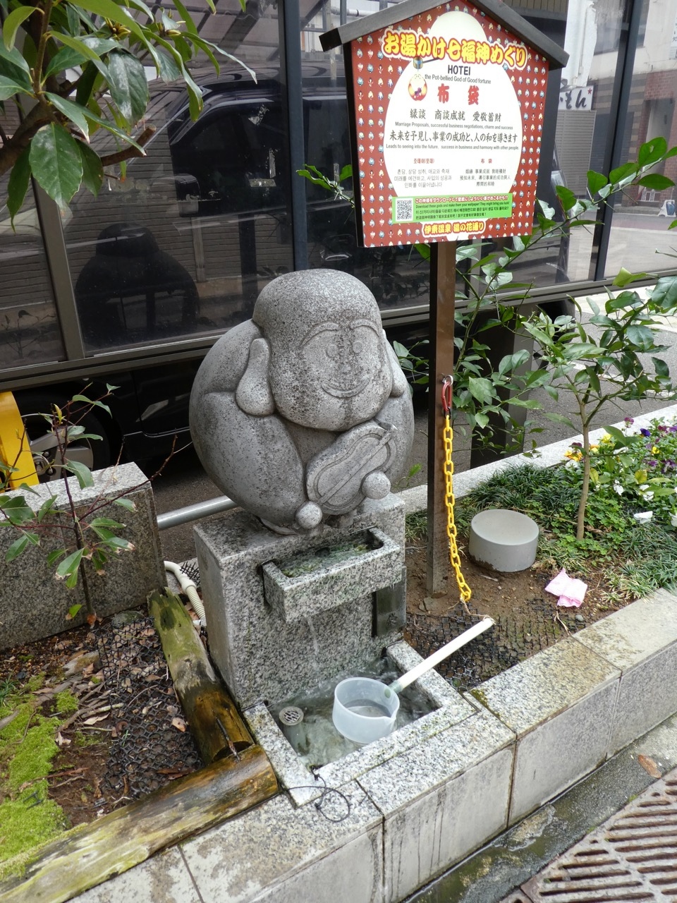 普通は伊東駅から商店街を歩いてくるのが普通なので、このお湯かけ七福神では一番最初に見ることができます。