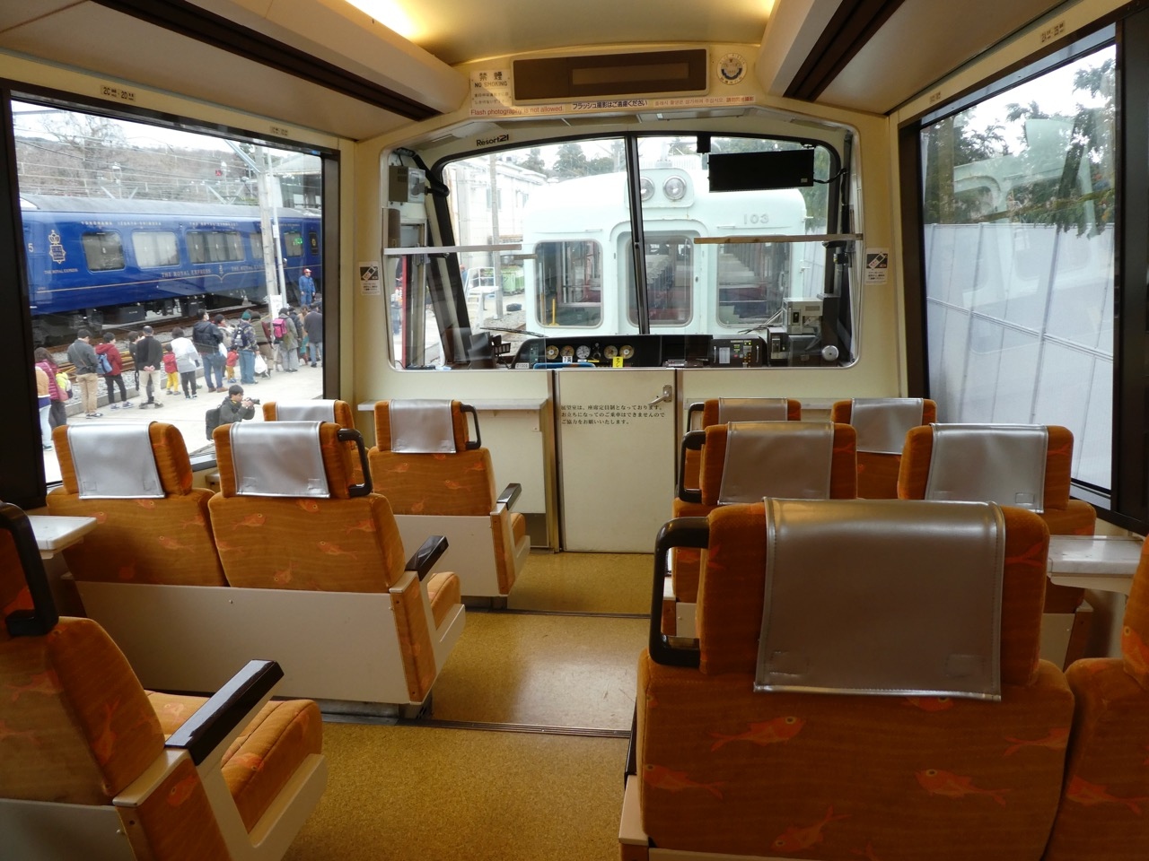 なお、車両は昔の東急の電車ですが、内部は海側のみ、元特急の豪華な座席を使ったボックスシートに改装。観光用として素晴らしい改造です。空いている時期には素晴らしい旅行ができます。