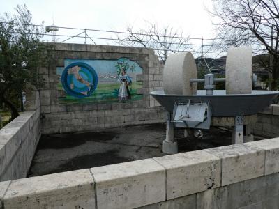 イタリアの友好都市との交流で、現地のオリーブオイルをひき潰すためにものだとか。なかなか効率が悪そうな機械ですが、絞って出るのが液体なので、そば粉などの石臼と同列に考えてはいけませんね。カスも大量にでるわけですし。