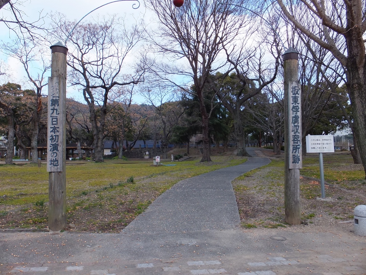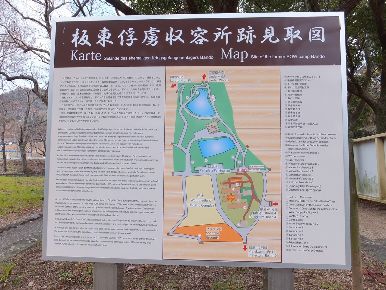 鳴門は第一次世界大戦の青島攻略の際に捕虜にしたドイツ兵を収容した施設のあったところ。その跡地が公園になっていて、当時の収容所の遺構や記念碑が散在しています。それぞれ説明表示があるのですが、水道施設やパン釜の跡、ただの四角い跡地にすぎない兵舎跡など、当時を思い浮かべるしかないです。なお、当時はもっと広かったようで、隣接する団地も収容所の敷地だったそうです。