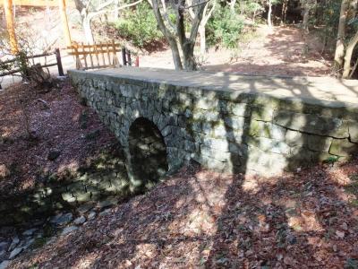 境内の裏の方には、ドイツ橋という名所があります。第一次世界大戦の後のドイツ兵の捕虜収容所が近くにあり、帰国を記念してここに石橋を作ったのだとのこと。神社にあるのが面白いです。