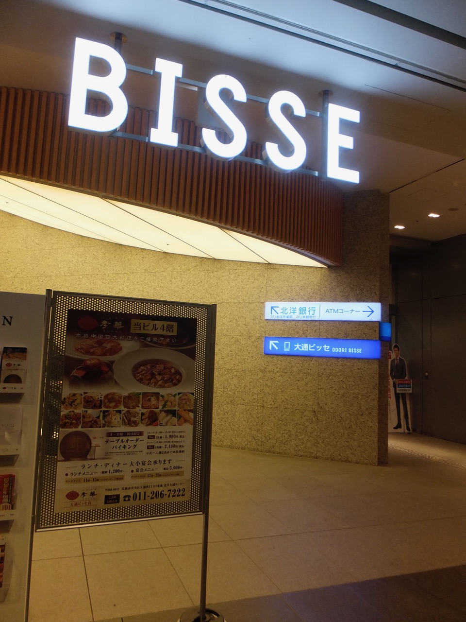 ポールタウンという札幌駅から大通・ススキノまでの地下商店街の途中、ちょっとした広場があるな、と思ったら、このビッセの入り口でした。入り口はちょっと奥にあって、ポールタウンに面した場所は広場になっていて休憩するためのベンチもあります。ビルの前が公園になっていることが多いように、地下道ではそれが広場になるのでしょう。