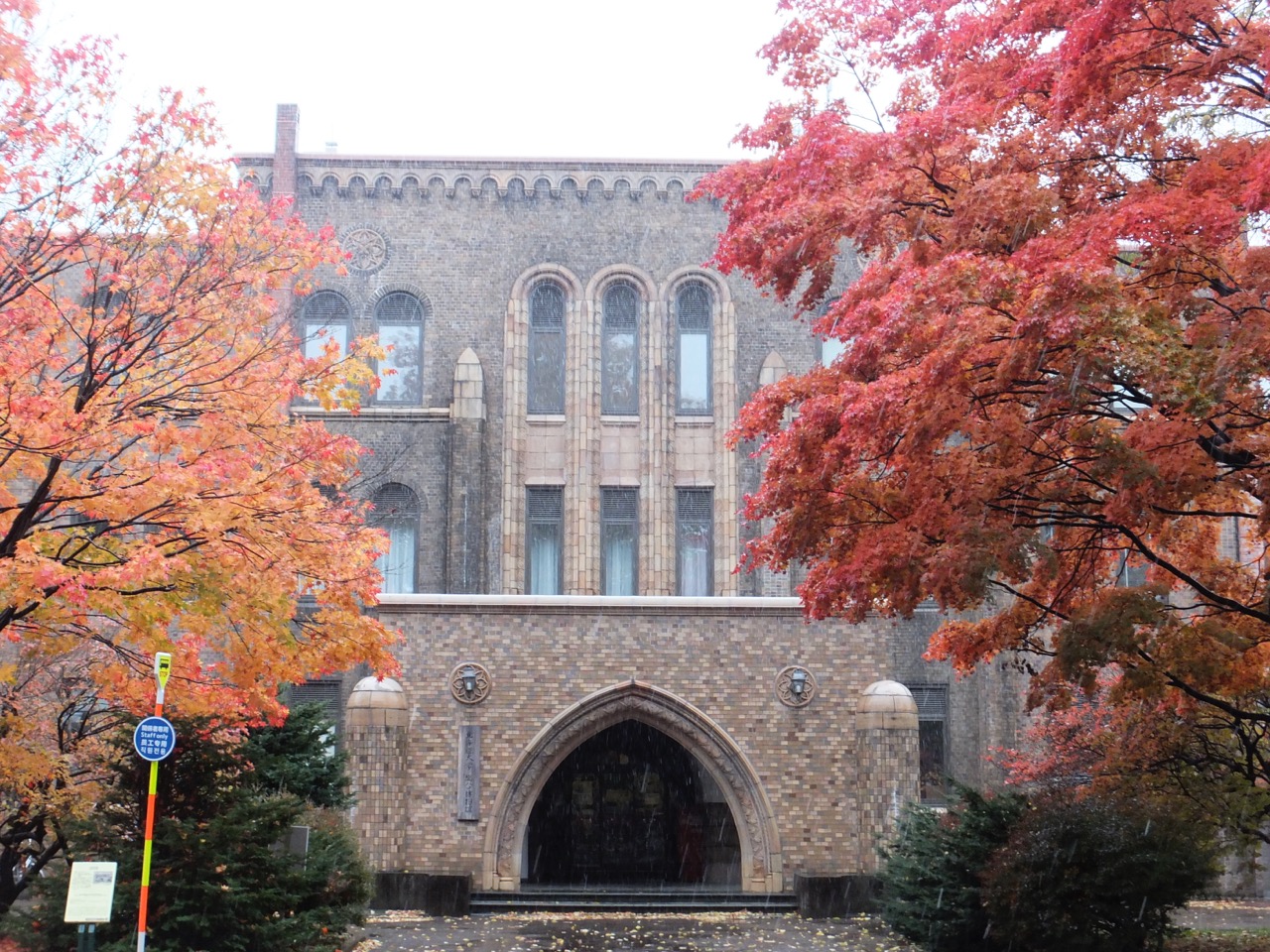 案内板によると、北大の建物では初の鉄筋コンクリートだそうで、レンガタイル貼りなのは新しい建築への過渡期だったのでしょう。なので当時はとってもモダンだったことでしょう。