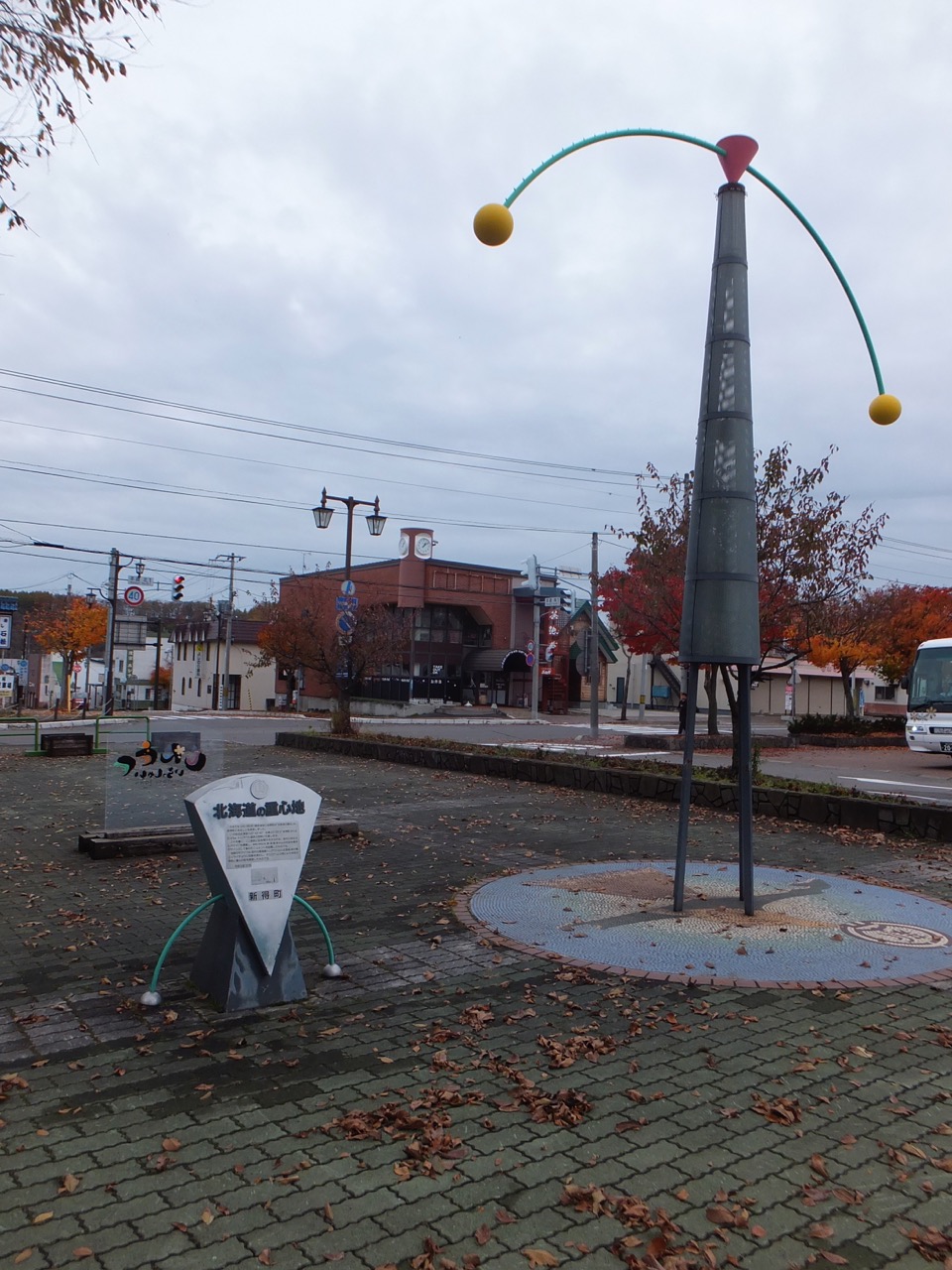 新得の駅前に、北海道の重心のモニュメントがありました。