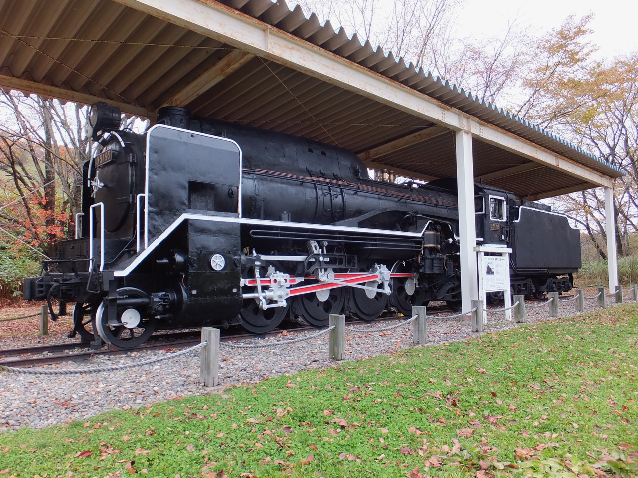 説明文を読むとこの新得駅から43kmも離れた地点が重心点とのこと。現地に行くのは多分、原野でしょうし、たいへんなので、駅前にモニュメントを造った、ということなのでした。