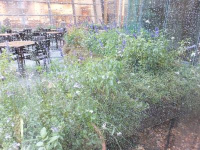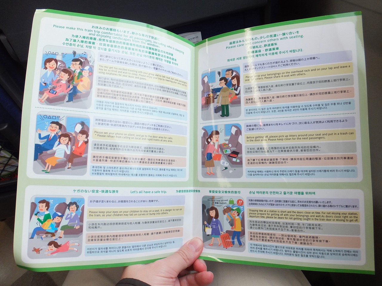 車窓は山奥の高原なのできれいなはずなのですが、窓に、窓ガラス保護用の黒いシートを貼り付けてあり、景色にさわやかさが全く感じられないのでとっても残念。