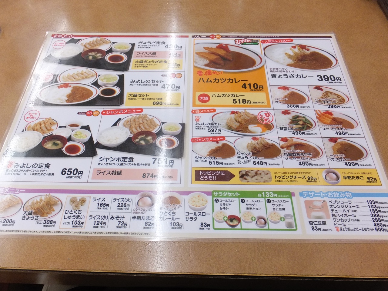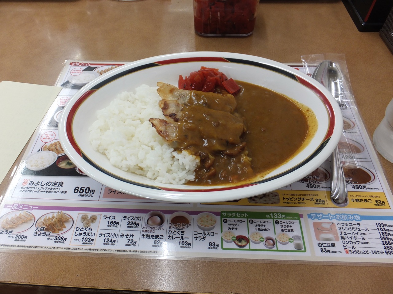 ぎょうざカレー390円。ぎょうざは3つ載ってます。とっても安いです。シンプルなカレーなら300円です。感激の安さです。札幌の人にとっては普通なのか、あまり混雑はしていませんでした。若い人には量が少ないかもしれません。その場合は、それぞれ量が2倍になって、料金は2倍の85%のジャンボカレーがあり、おすすめです。2人で食べることができるのかは不明です。