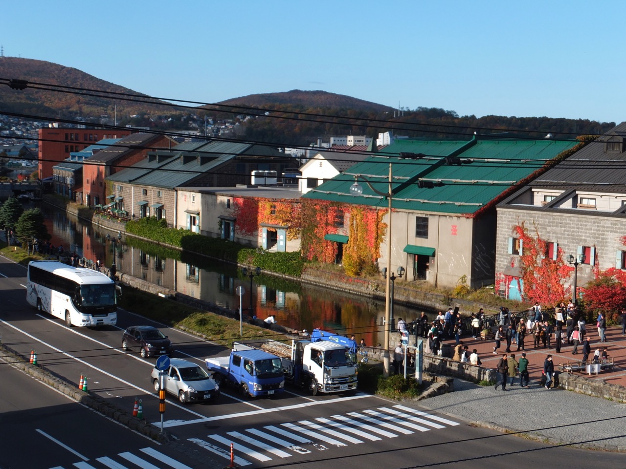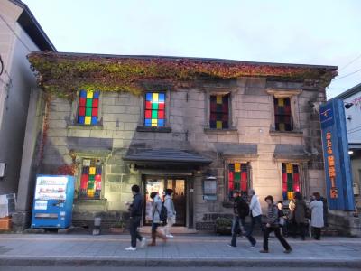 メルヘン交差点のあたりにはお土産物やさんが固まってます。北一硝子の前を通っての観光地の端っこです。