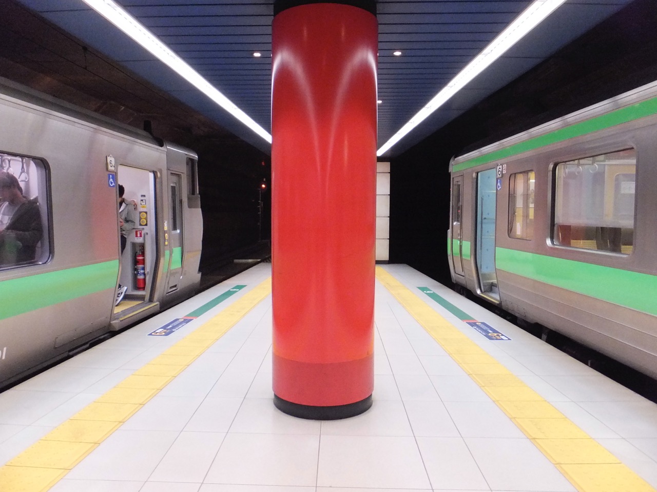 床面に描かれた陸上のトラックのような印刷が楽しいです。どこに向かうかいい案内標識です。