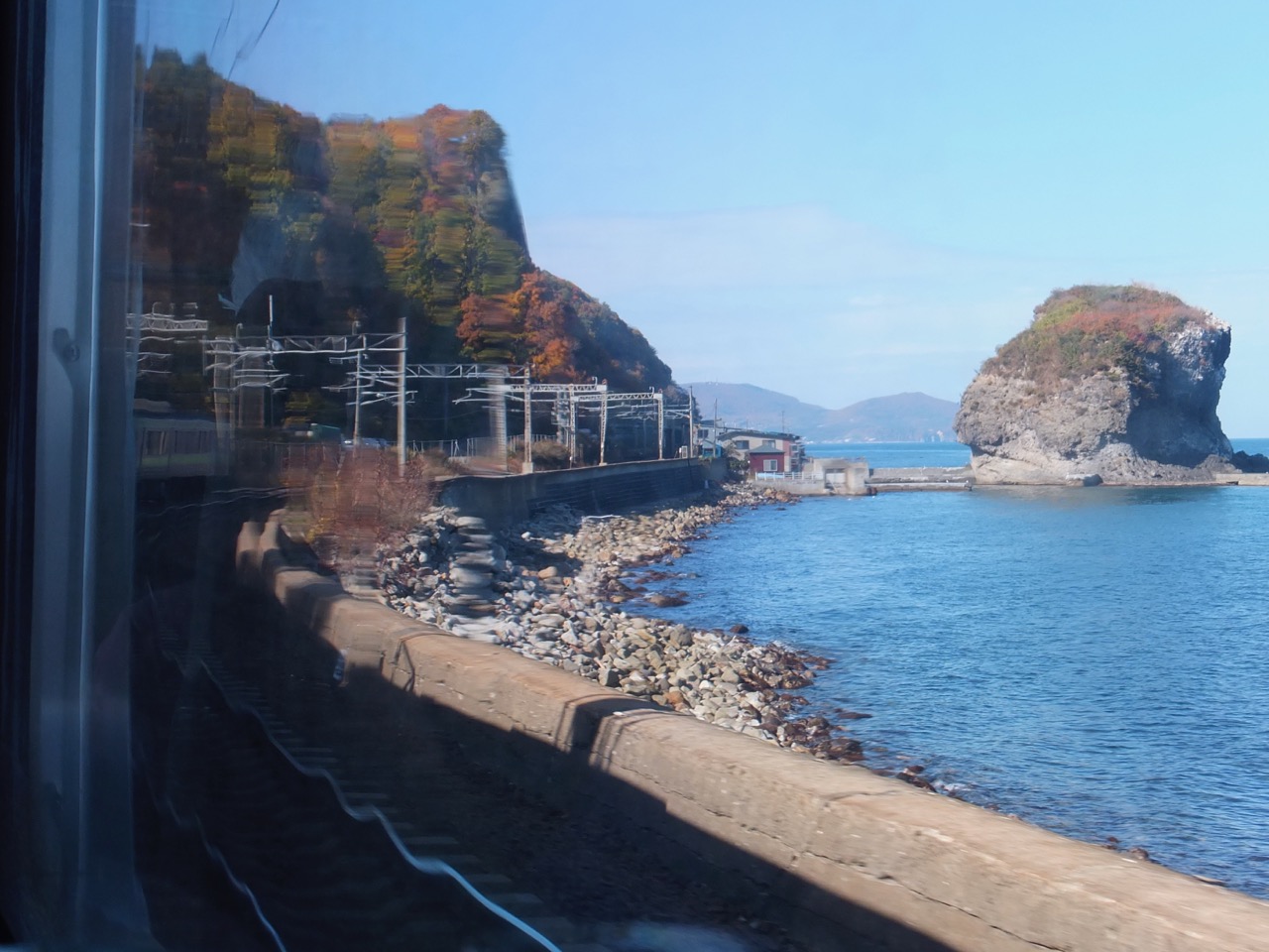 この区間の実物は銭函駅と小樽築港駅のあいだの海岸沿いの景色。