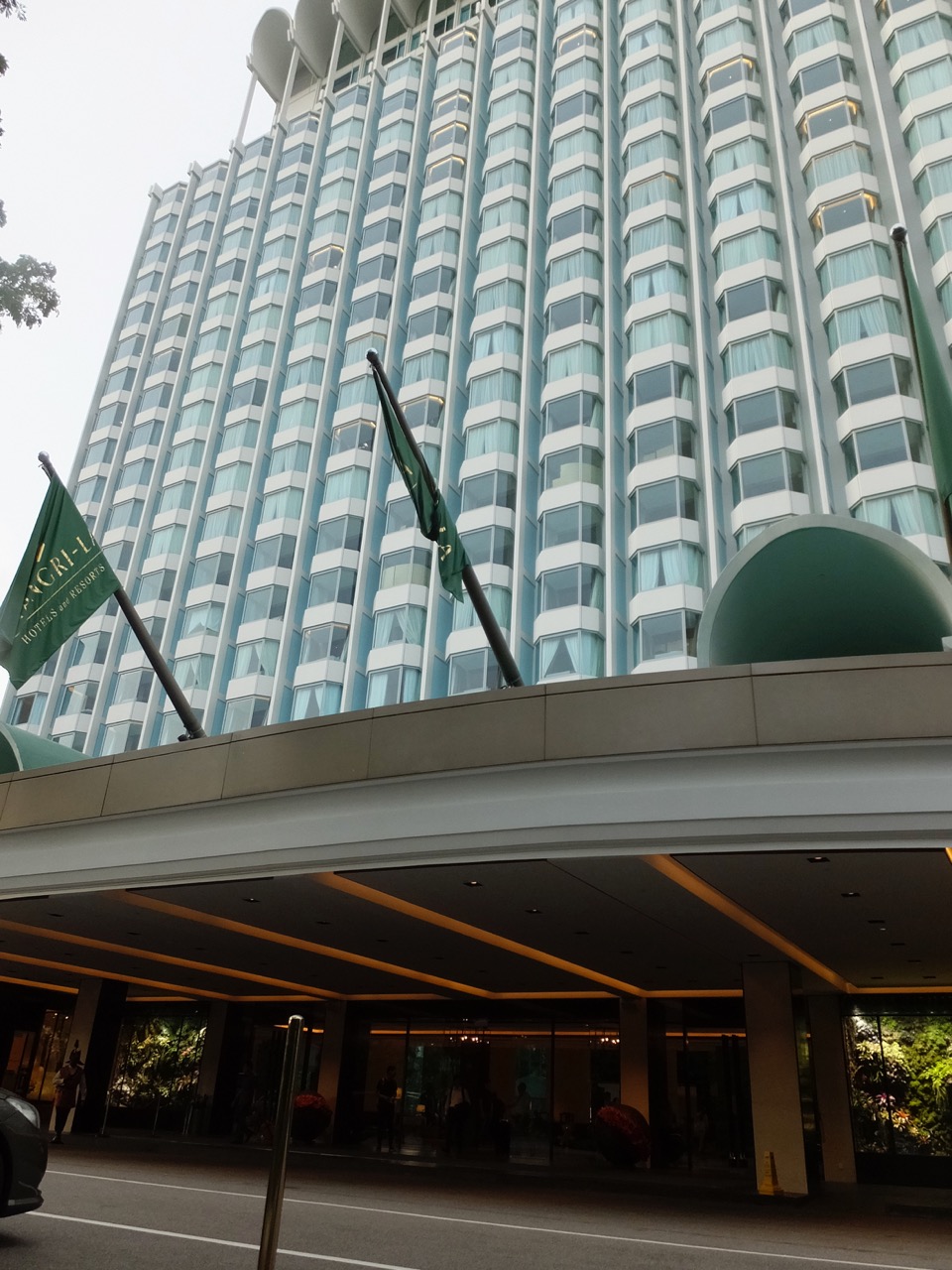オーチャード駅からはちょっとした丘のこのホテルまで12分くらいは歩きます。蒸し暑い日は、ちょっと苦しいかも。タクシーが普通でしょうが、このあたり一方通行だらけで距離の割に時間と料金がかさみます。