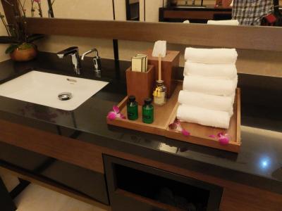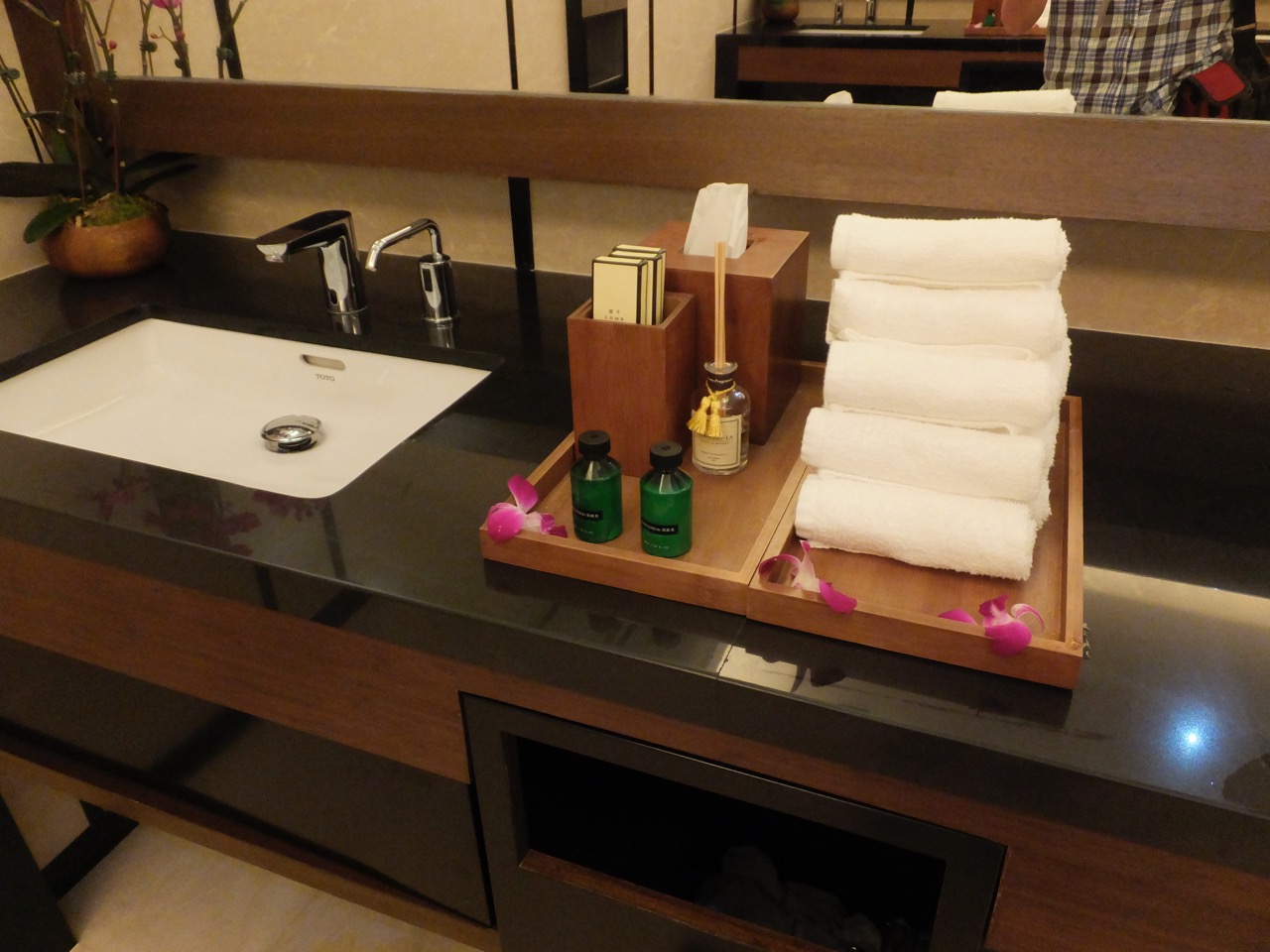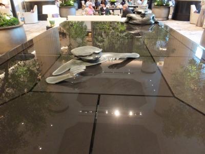 さて、入ると大きな吹き抜け。ロビーにはなぜかカッパのようなスイミングプールのモニュメント。うーんセンスがよくわからないです。お店は探すまもなくホテルの方がすすーと寄ってきて案内してくれました。