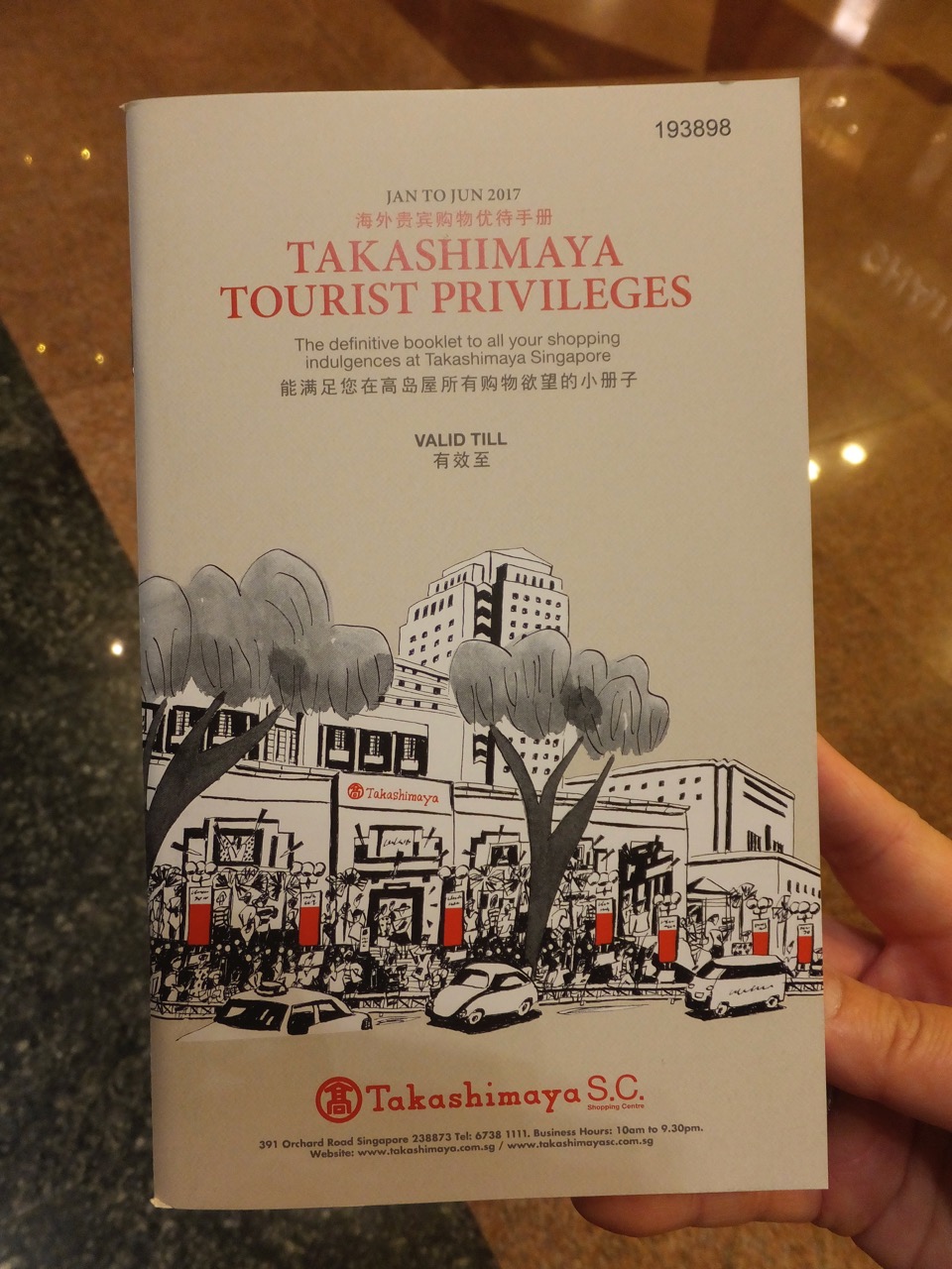 オーチャード通りのサマセット駅の近く、通りの北側の1階にあります。昔2012年ころに来た時はパンフがいっぱい、割引券などもいっぱい置いてあったと記憶してますが、今回、入ってみるとタブレットが置いてあるだけ。パンフは奥の方に少しだけ。変わったものです。