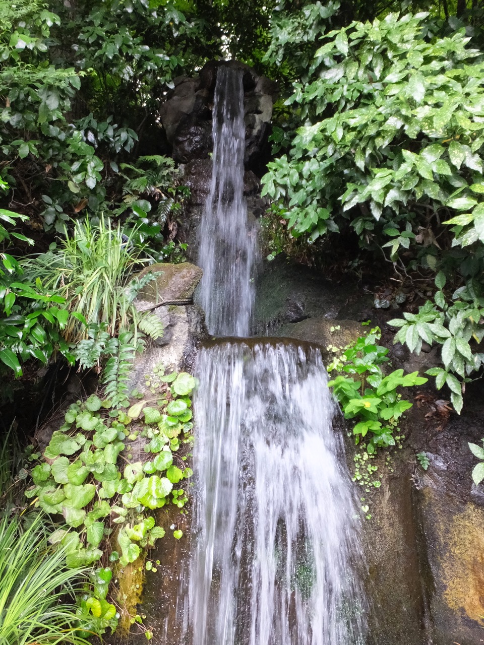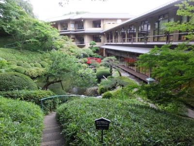建物は山の斜面に向かって建てられていて、その斜面は散歩道になっています。斜面には川があり滝があり、変化に富んでいます。食事の前後の散歩は気持ちいいです。