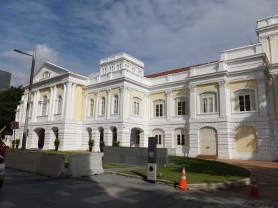 ラッフルズ卿上陸地のすぐ隣にある、ちょっとかわいらしい色調の洋風建築。最近塗り替えたのかぴかぴかです。昔の国会議事堂だそうです。たしかに形は威風堂々、ですが、やはり色がやわらかい雰囲気にしてしまっているようです。